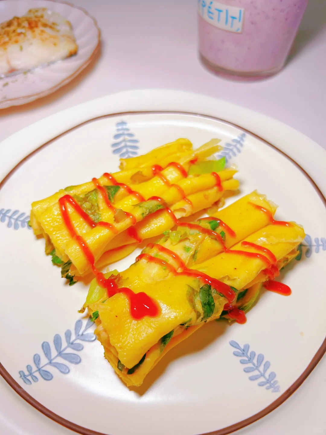 3. 果蔬类:生菜《生菜鸡蛋水饼》、蓝莓+香蕉《蓝莓香蕉奶昔》
