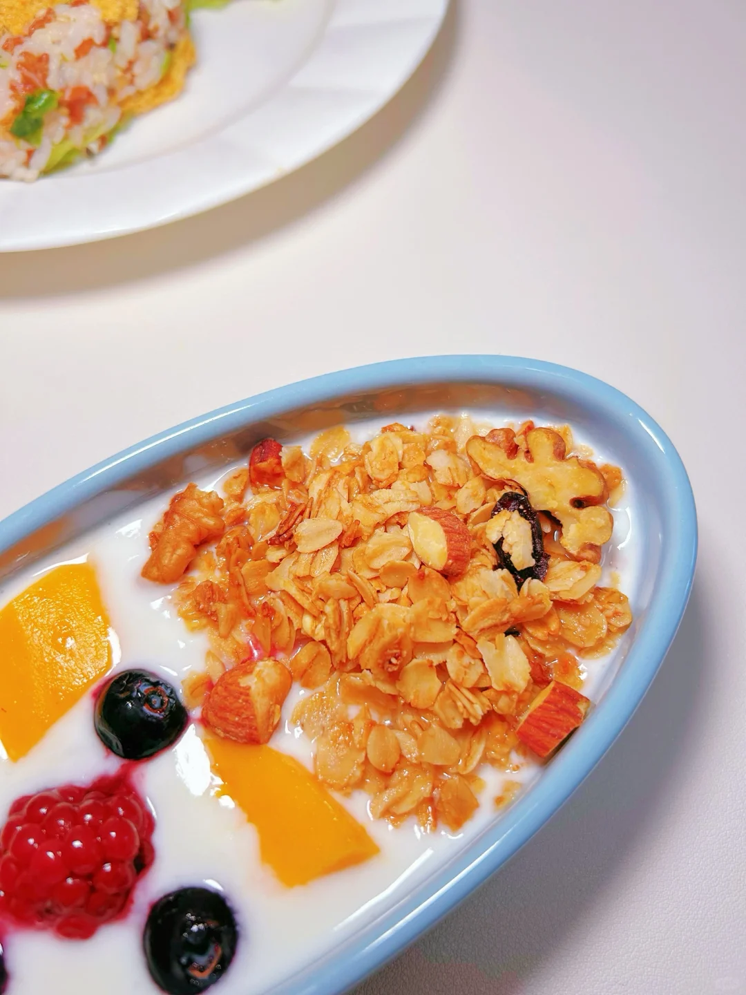 1.酱牛肉,优质蛋白质,基本每周末都会酱4斤,冷冻分装。 2.自制坚果烘焙燕麦,配上酸奶或牛奶,脆脆的口感,做早餐或放学后的补充,方便又好吃。 3.肉松糙米饭团,快手早餐,晚上预约米饭,早上加点蛋白质、蔬菜,营养就足够了。