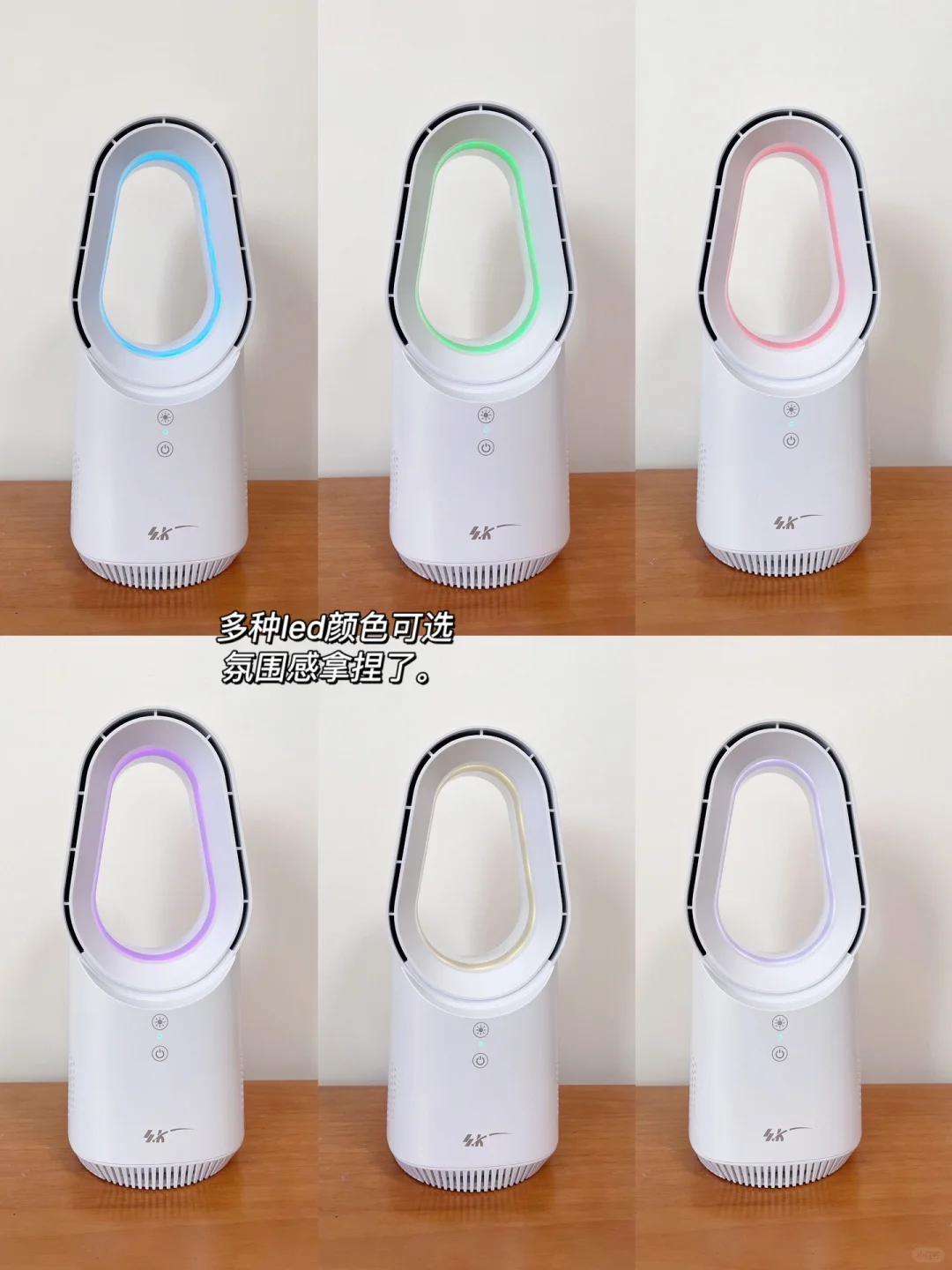 🌛就算不吹风扇,也可以放在床头当小夜灯,它有5色led氛围灯可选,真的是太喜欢了。