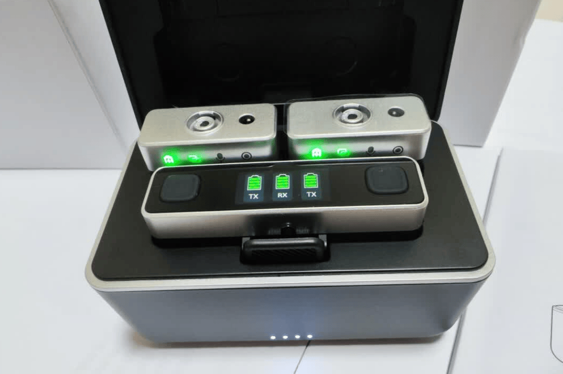 续航方面,单个发射器可连续使用约 5–6 小时,配合充电仓整体续航可达 20 小时,满足日常拍摄和直播需求。机身小巧轻便,佩戴舒适,携带方便。