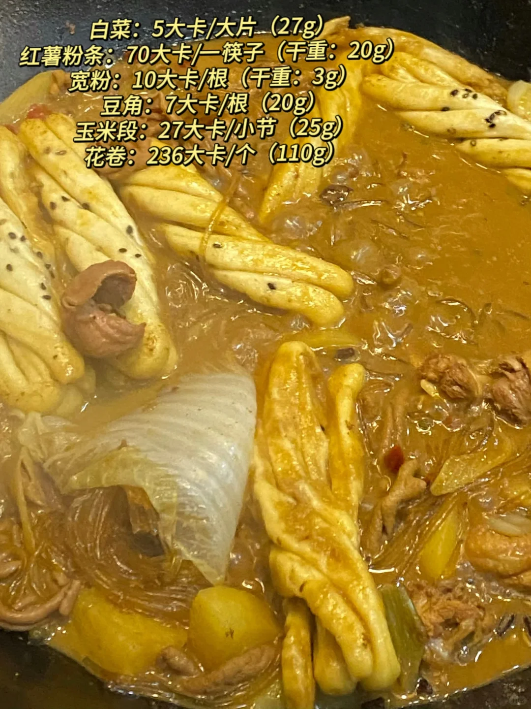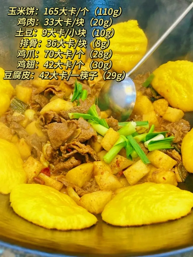 3⃣️地锅鸡饼子/粉条/馒头片/花卷/土豆这些碳水比较多,所以要控卡的姐妹可以适当少吃点主食。