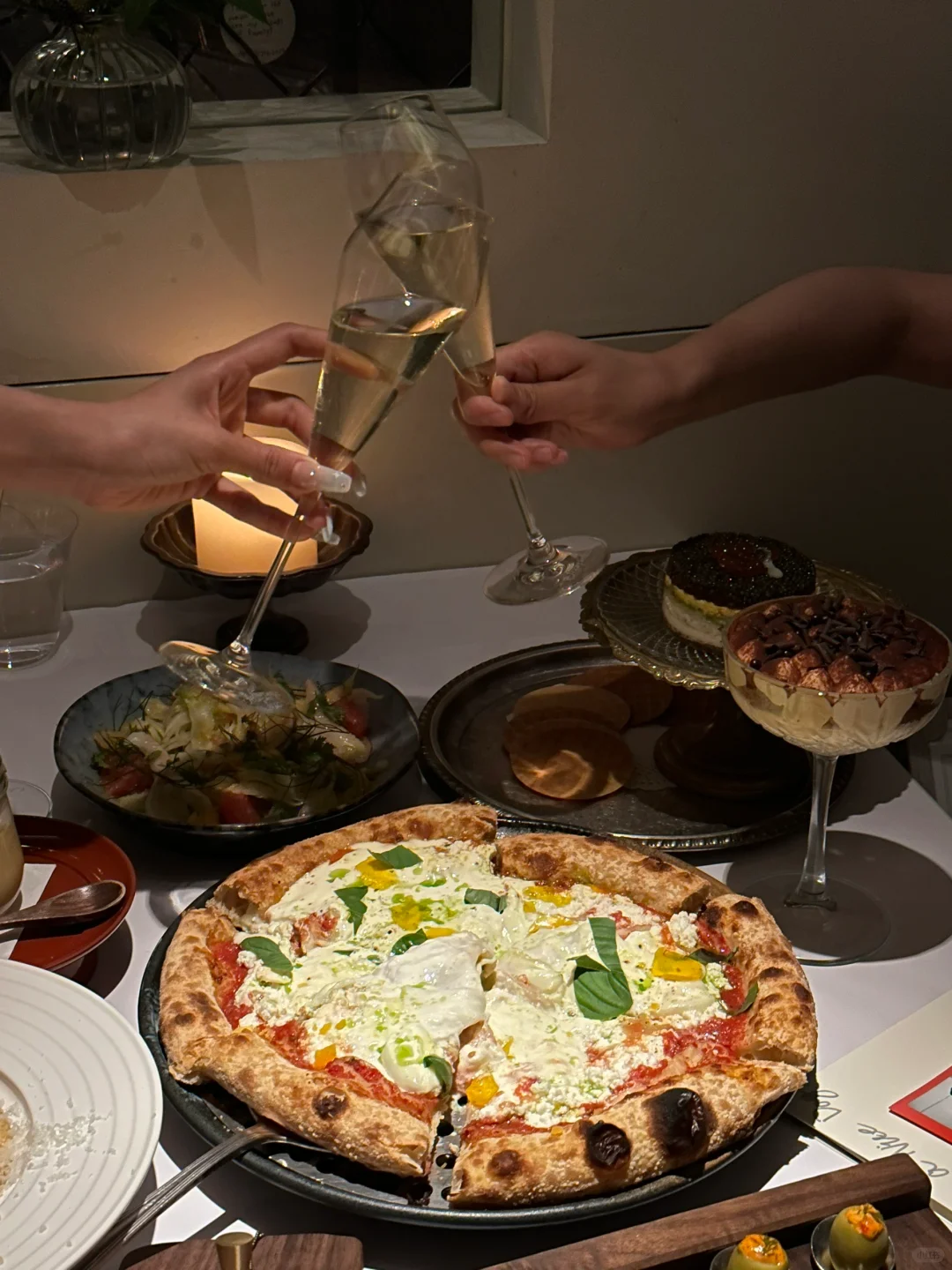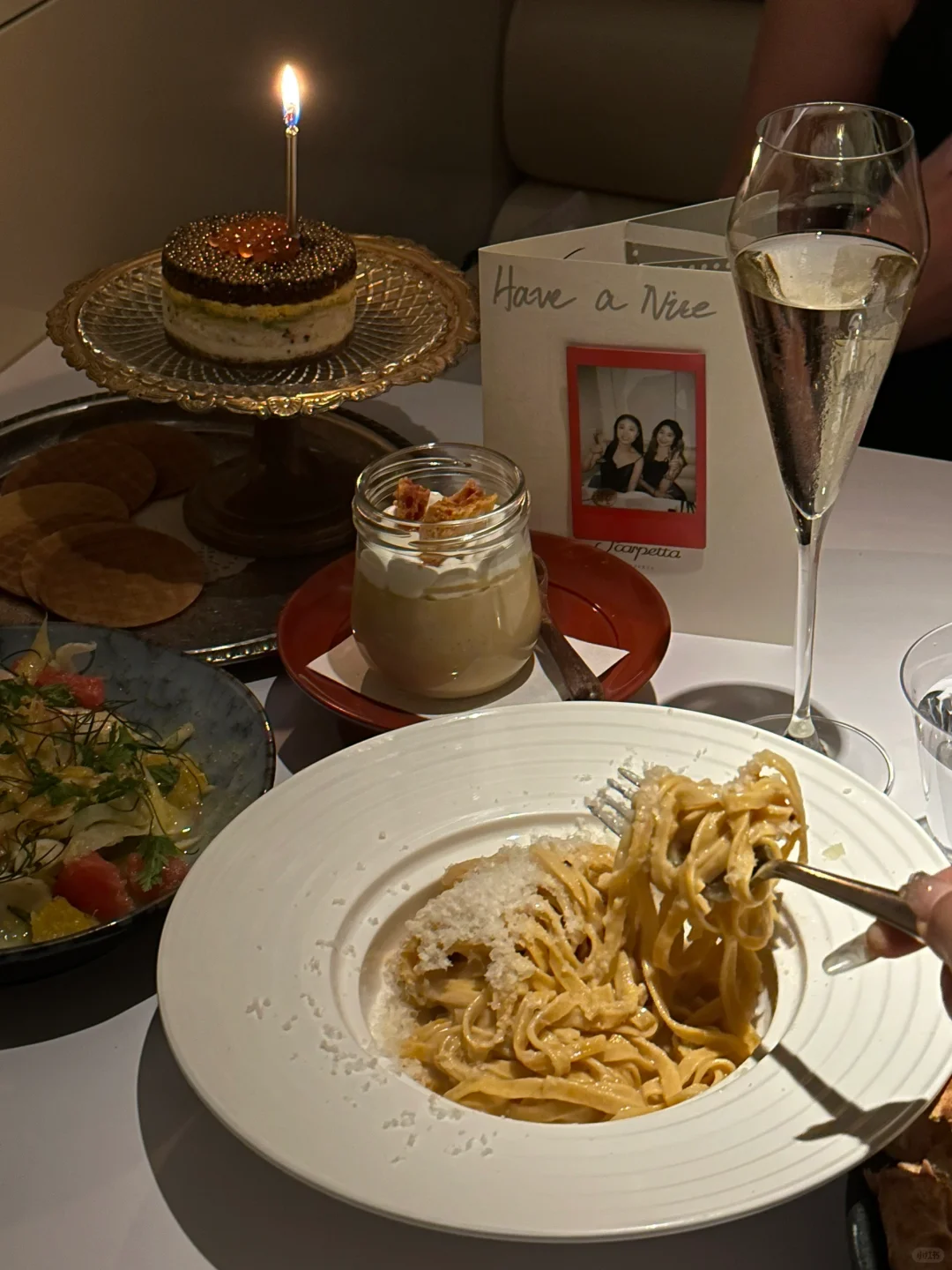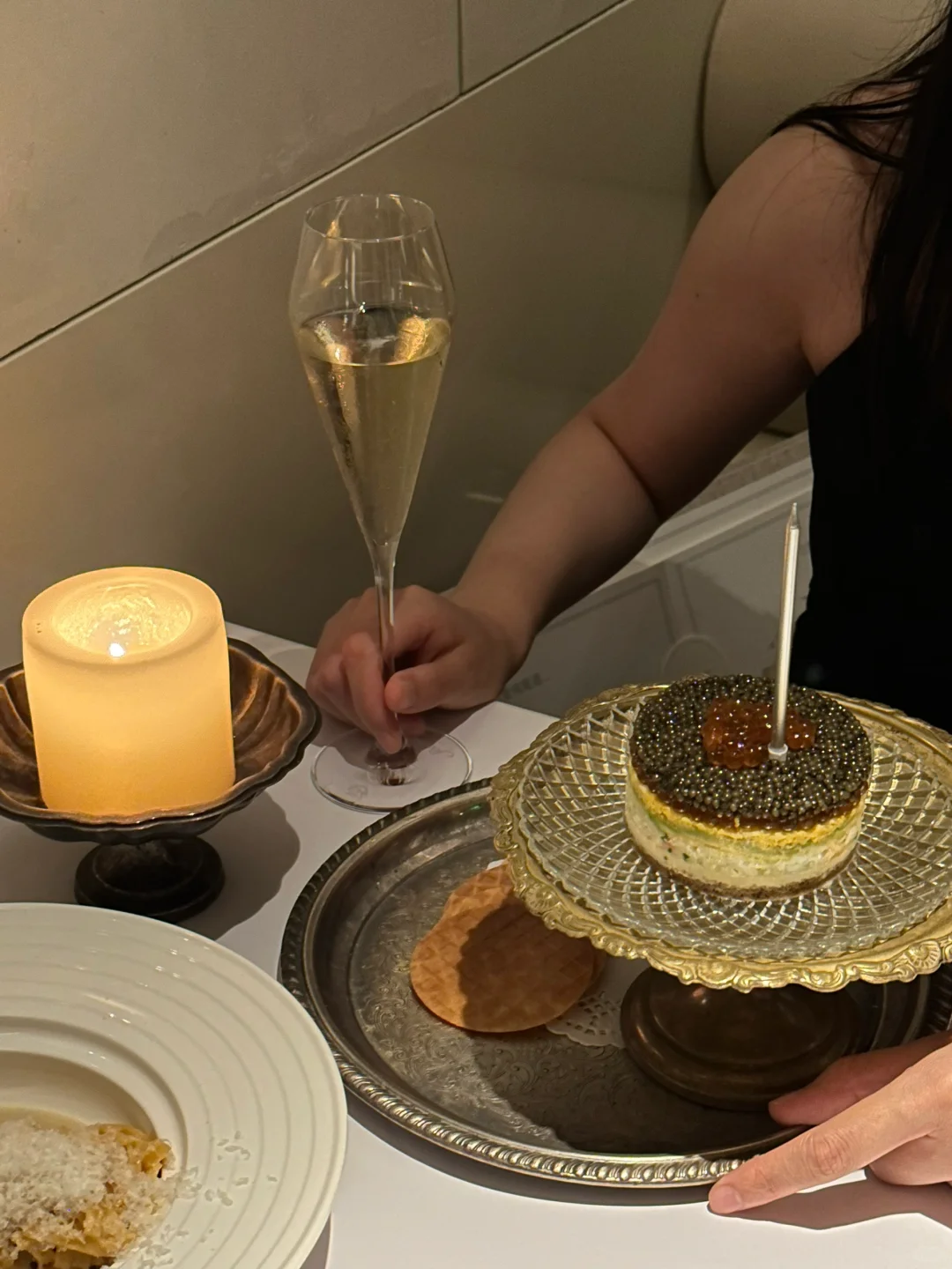 有💰姐妹请的漂亮饭 随随便便就近2000了 不过双层鱼子酱蛋糕、披萨真的很惊艳!
