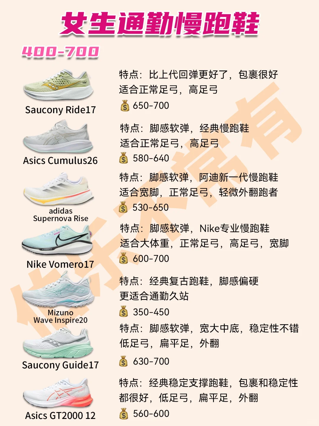 为了方便大家选择,伯乐给大家整理21双高口碑且适合女孩子的通勤慢跑鞋!根据价格分成了3类,每双鞋标注了适用情况。希望能帮到你们[害羞R]