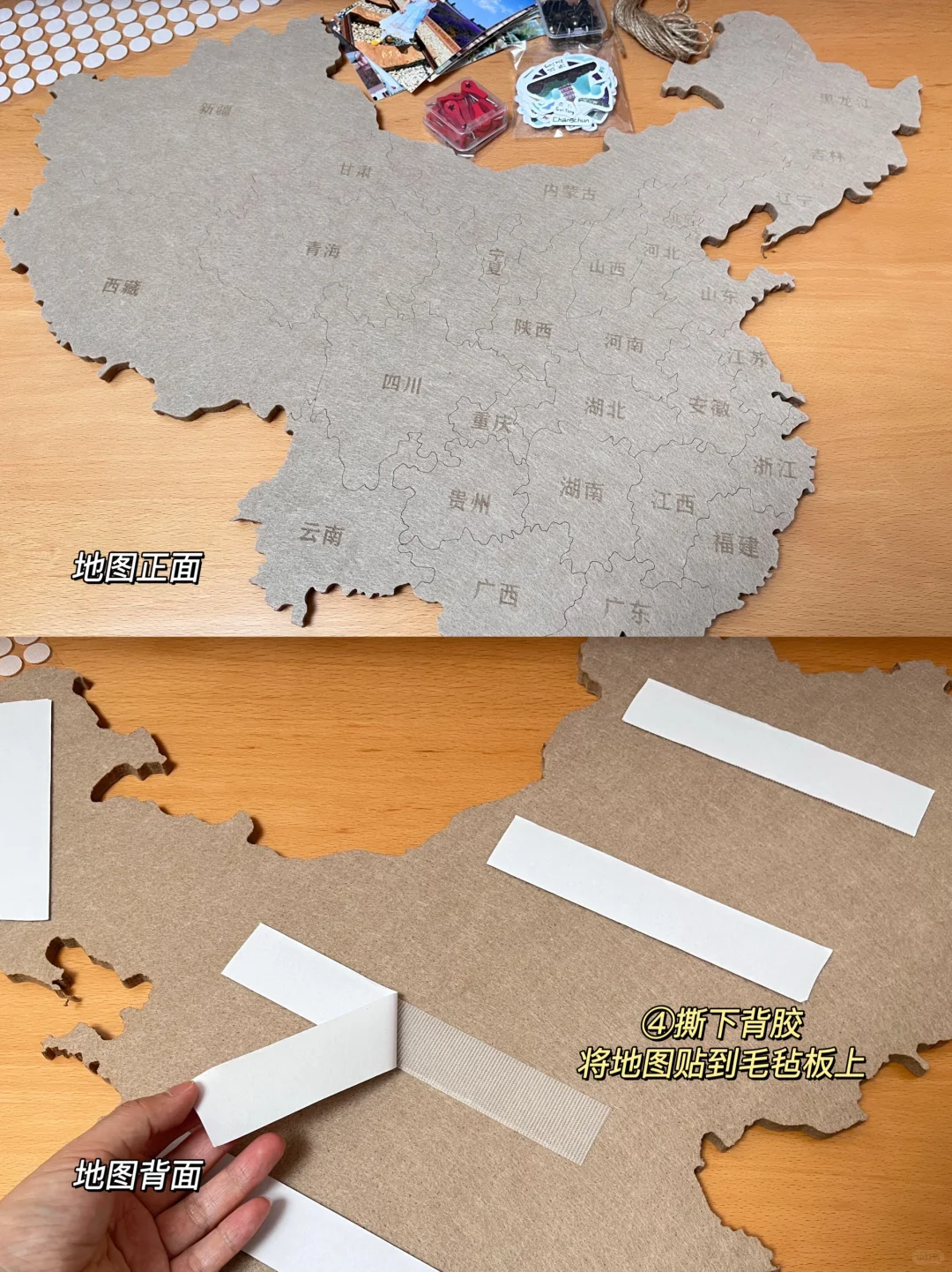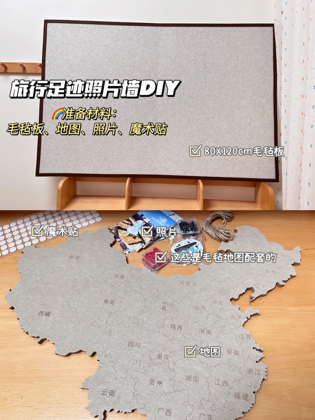 旅行地图照片墙DIY其实超简单的,用毛毡板还不伤墙。
