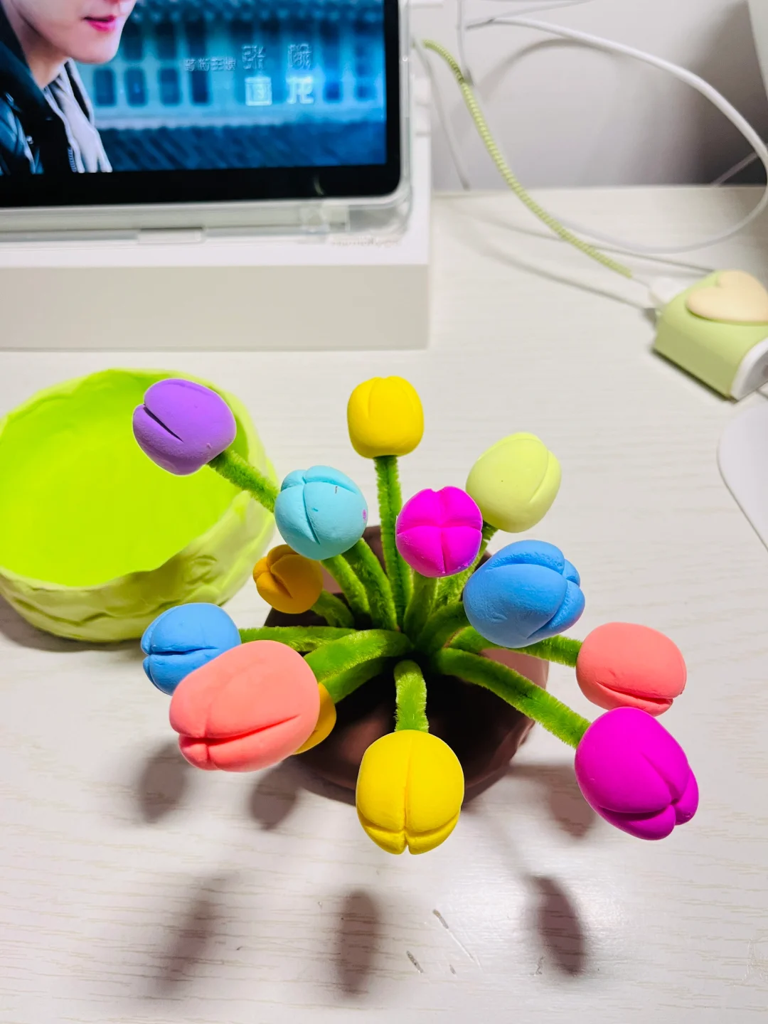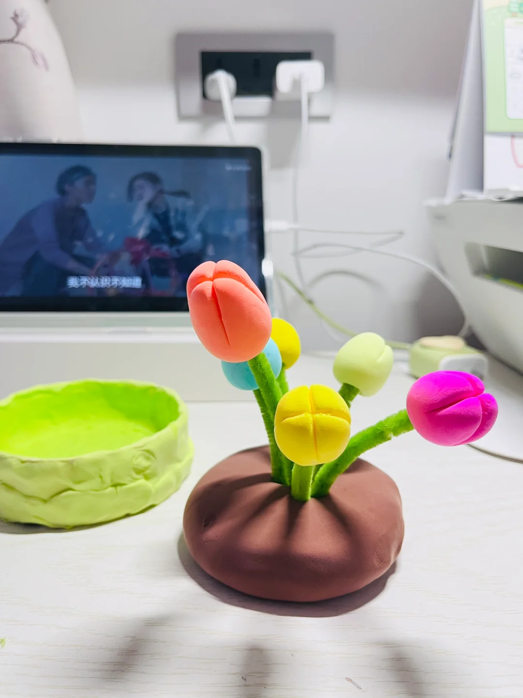 浪漫 幼师 幼儿园老师 粘土 粘土手工 郁金香 粘土教程