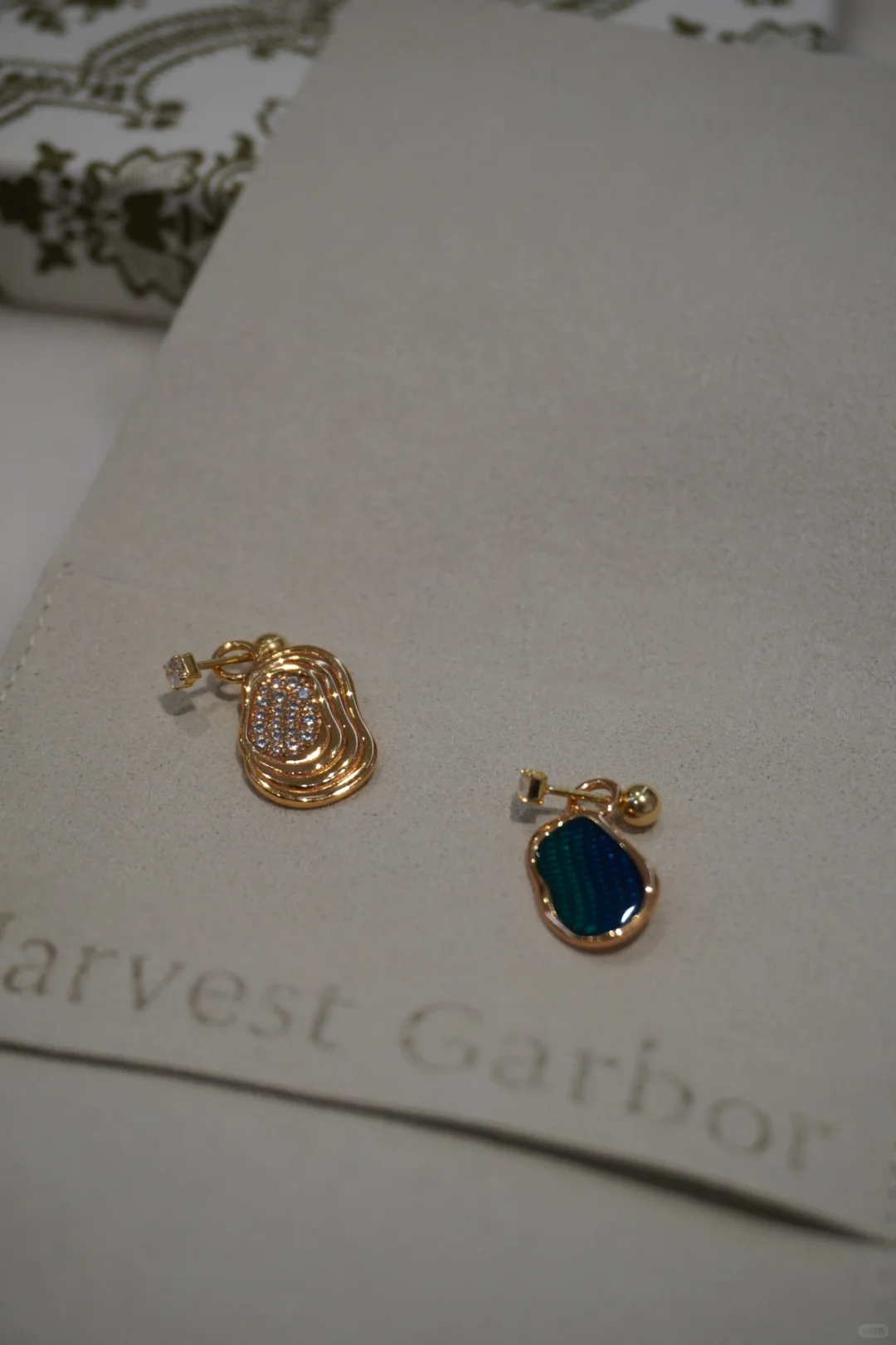 闺蜜送我的小礼物 华晖佳宝西北之境首饰💎 耳环很精致 非常有设计感 是A B款 金色和墨绿色搭配非常有质感 华晖佳宝坚持设计师原创设计 纯手工打造 精致感满满~