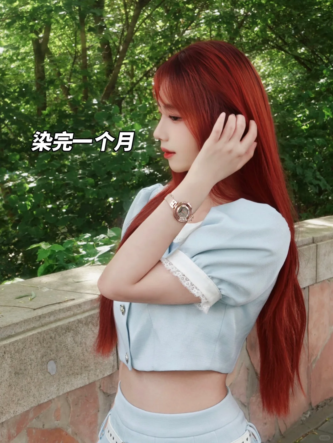 五月初自己在宿舍染了海王红 到现在两个多月啦 红发真的没有掉色尴尬期! 美了整整两个月~ 即使黑发根长出来了也不明显 慢慢从红色掉到了橘棕 中间过程还很像最近流行的脏橘哈哈哈哈 染一次头get三个显白发色 ^ ^