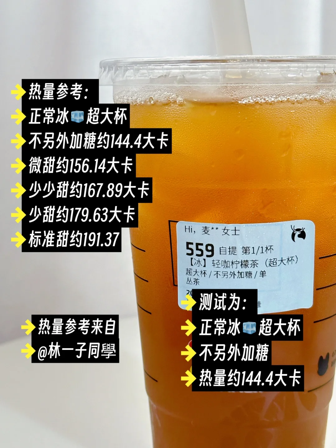 测试为正常冰🧊超大杯,单丛茶底,不另外加糖,热量约144.4大卡✔