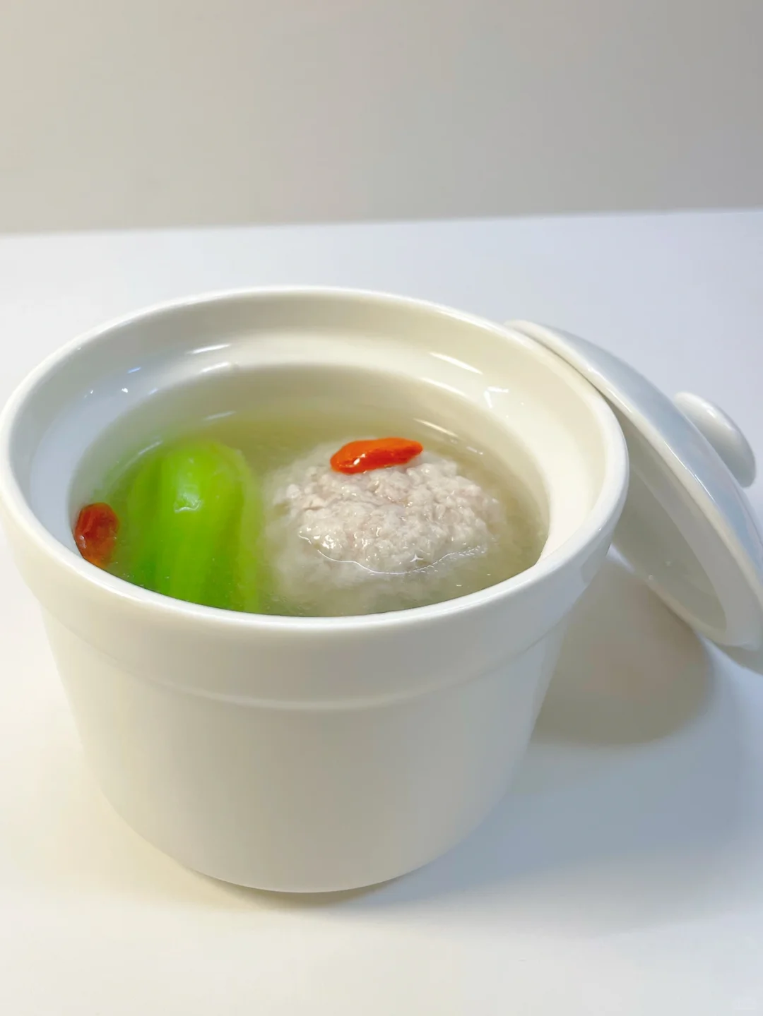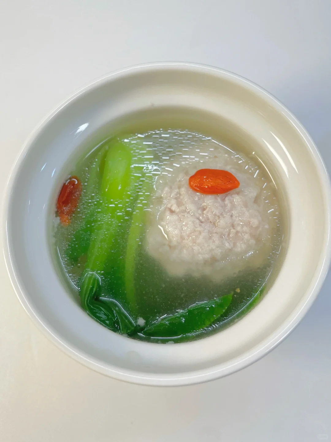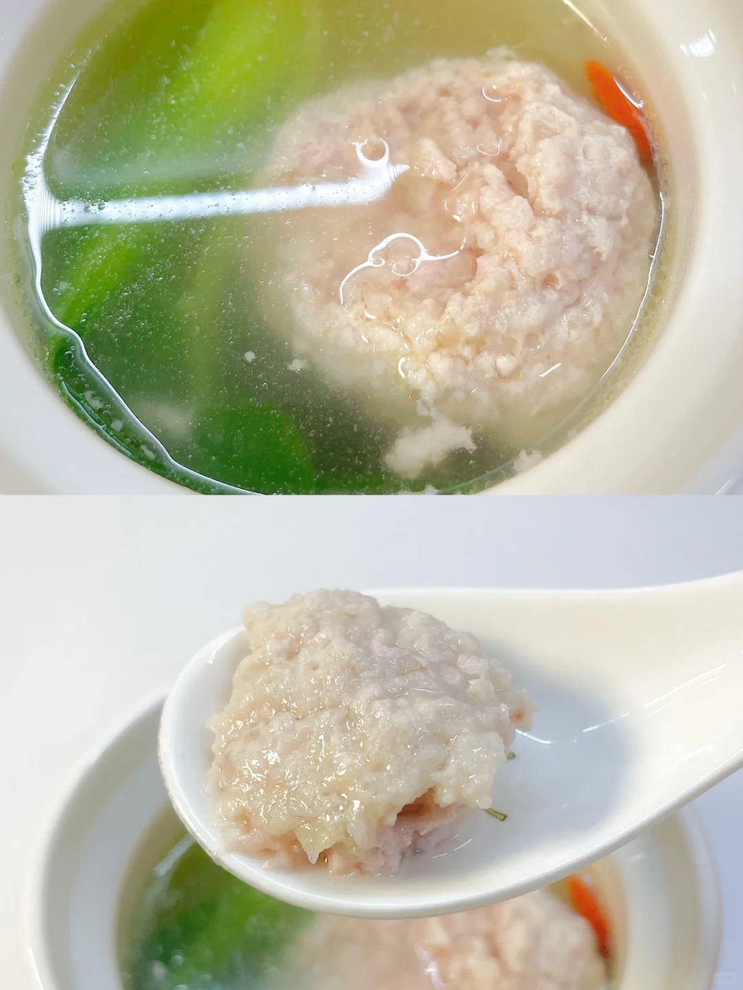 5️⃣水开后转小火,放入肉丸继续小火煮开,煮开后撇去浮沫再炖二十分钟,出锅前加少许盐即可~