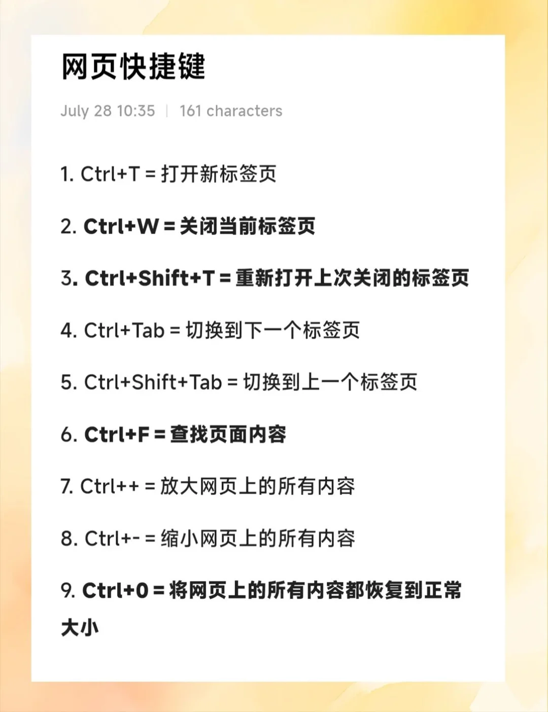 只要稍有风吹草动,立马迅速按下,待到安全之时,便可 Ctrl+Shift+T 恢复刚刚关闭的网页,这套组合拳在摸鱼场上可谓是所向披靡👊🏻😎 或者试试 alt+c,或 esc 快速关闭聊天框。 ctrl+w快速关闭网页。 win+d 切换回桌面,再不慌不忙点开下一个工作文件夹。 还汇总了一些我觉得超级好用的高效快捷键!