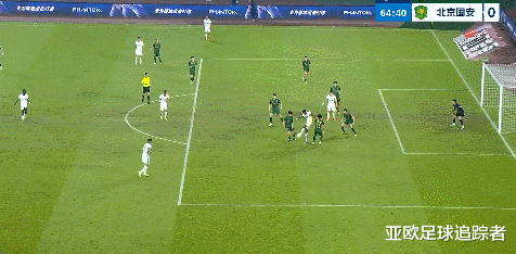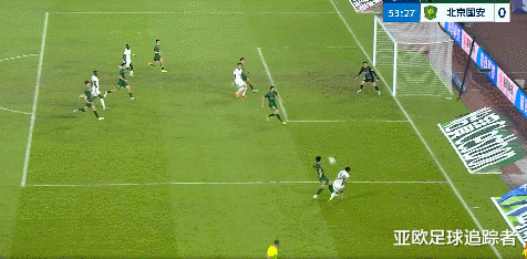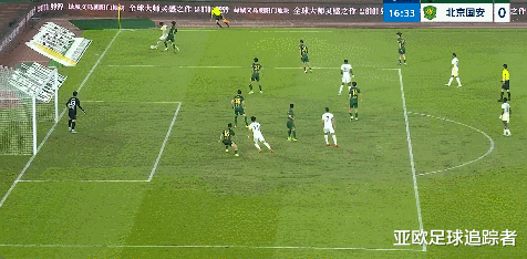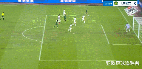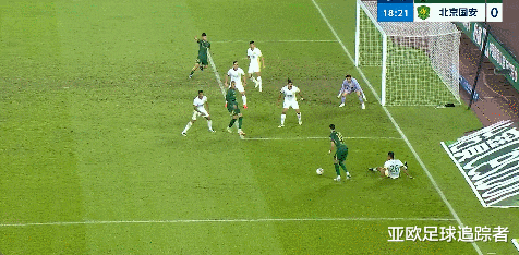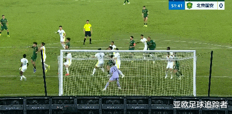 比赛第39分钟,北京国安开出角球,张玉宁将球顶在了球门边网上。