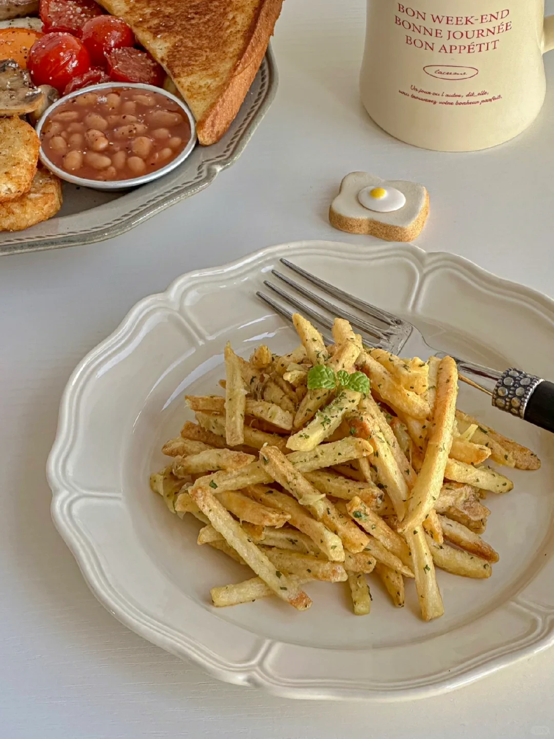 还有蒜香浓郁的美乃滋薯条~不要太幸福[色色R]
