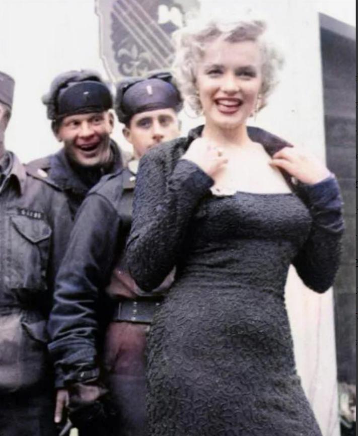 "1940年代,一名士兵举起一名年轻的女人,将她送给卡车上的大兵。这名大兵不但亲吻她的嘴唇,甚至将手放在了她的腰间,这名女子不是车上那名大兵的情人,也不是风尘女子。 她叫玛莎·奥德里斯科尔 ,是好莱坞的一名当红女演员。在1940年代,当整个世界都卷入了二战的硝烟之中,美国也不例外。 1941年12月7日,随着珍珠港事件的发生,美国被迫正式加入这场全球冲突。随即,无数美国青年从农田和工厂中被招募入伍,面对的是未知的未来和可能的死亡。 在这样的背景下,美国政府不仅在战场上计划战术,更在文化层面展开了一场心理战。其中,好莱坞,这个梦工厂,也被动员起来,成为了宣传机器的一部分。 1942年的某个夏日,一位名叫玛莎·奥德里斯科尔的好莱坞女星,出现在了美军的基地中。 玛莎不是普通的女演员,她出生于德国柏林,自幼饱受战争的摧残,后来移民到美国。 当战争爆发时,她选择加入美国国籍,希望能用自己的影响力为和平贡献一份力量。这天,她穿着一袭蓝色连衣裙,踩着高跟鞋,优雅地走上了表演舞台,她的到来立即点燃了整个训练场的气氛。 当音乐响起,玛莎开始热情地跳舞,她的每一个动作都散发着星光般的魅力。士兵们的眼睛里充满了敬仰和狂热,她就像是从银幕走出来的女神,带给他们一丝战火之外的慰藉和快乐。 然而,就在演出结束时,一名年轻士兵走上前来,请求在他出征前能亲吻玛莎一下。玛莎想了想,觉得这或许能给即将赴战的士兵留下一份美好的回忆,她便爽快地答应了。 这一幕被一位军方摄影师捕捉下来,成了一张宣传照片。 照片中,玛莎被几名壮实的大兵高高托起,那名士兵在众目睽睽之下吻上了她的红唇,其他人羡慕地看着。这张照片很快被用作战时宣传,传遍了整个美国,象征着即使在战火频发的岁月里,美国人依然能拥有如电影般的浪漫和自由。 然而,这种宣传的背后是复杂和矛盾的。玛莎虽然被赋予了振奋人心的角色,但她心中也感到了矛盾和无奈。 她的初衷是希望通过自己的影响力为和平贡献力量,却不小心成了战争宣传的一部分。战争的残酷与宣传中展示的光鲜形象形成了鲜明对比,玛莎在内心深处感到了挣扎。 尽管如此,玛莎并没有停止她的表演。她继续在各个军营之间穿梭,用她的舞蹈和笑容给前线的士兵们带去一丝安慰和快乐。 直到1945年战争结束,和平再次到来,玛莎因其在战争中的表现和对士兵的慰问被授予了“和平勋章”。 这个故事让我们深思,战争宣传虽然可以振奋人心,但也可能掩盖真相和苦难。我们看到的,不一定是全部的真实,宣传的力量虽大,但也需谨慎对待。 玛莎的经历提醒我们,每个在战争中发光发热的星光,都有其背后的阴影和代价。在欣赏这些光鲜的表面下,我们不应忘记那些为我们付出和牺牲的人们。
