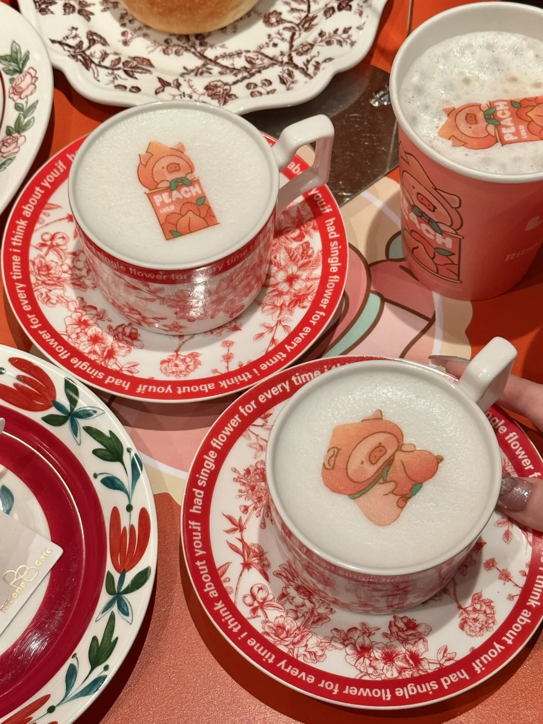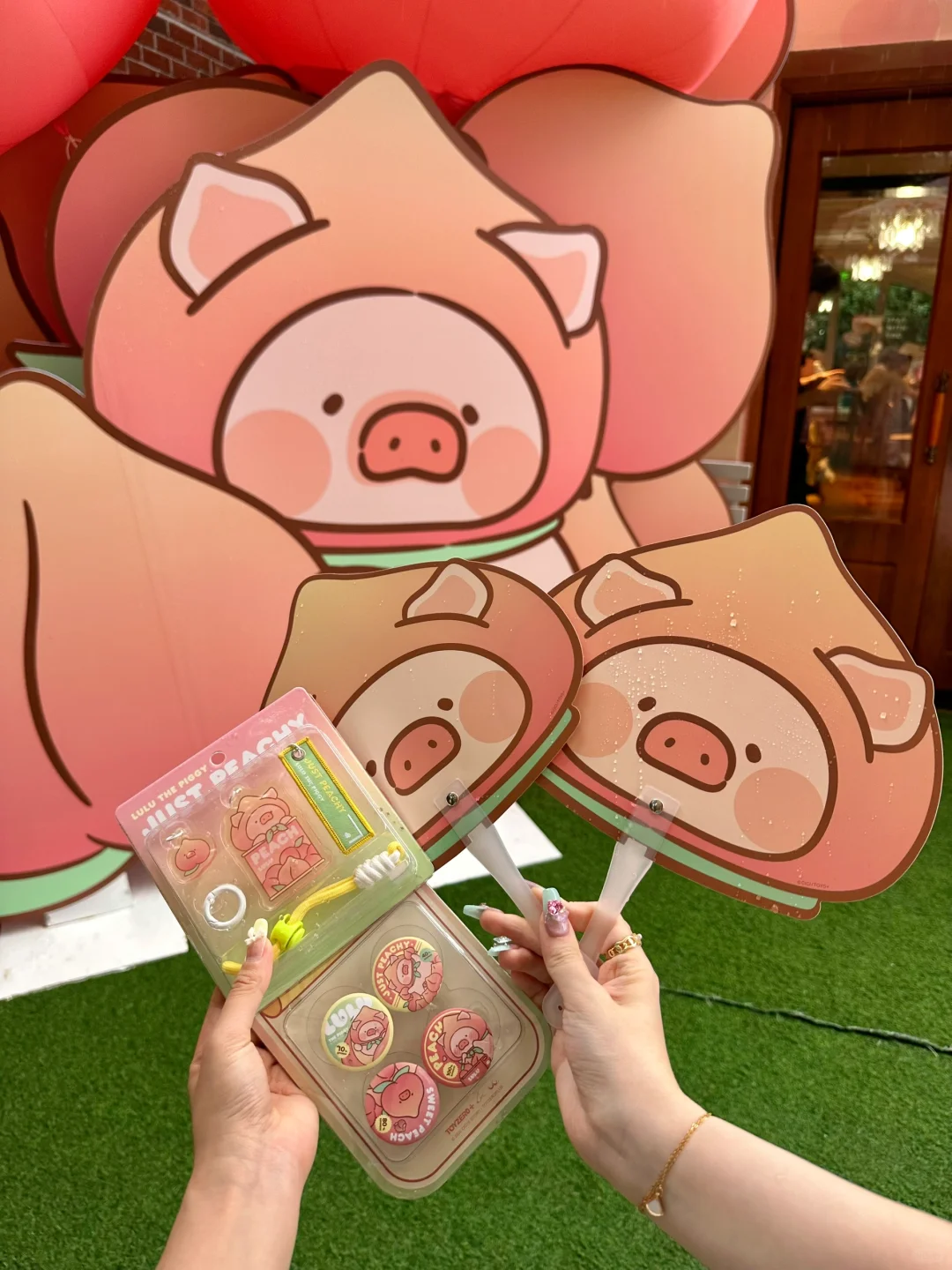 可爱到舍不得吃!!狂拍100张!! 咖啡上的猪猪也可以吃🐽!!很细节! 还可以🆓领扇子 拍大头贴!!