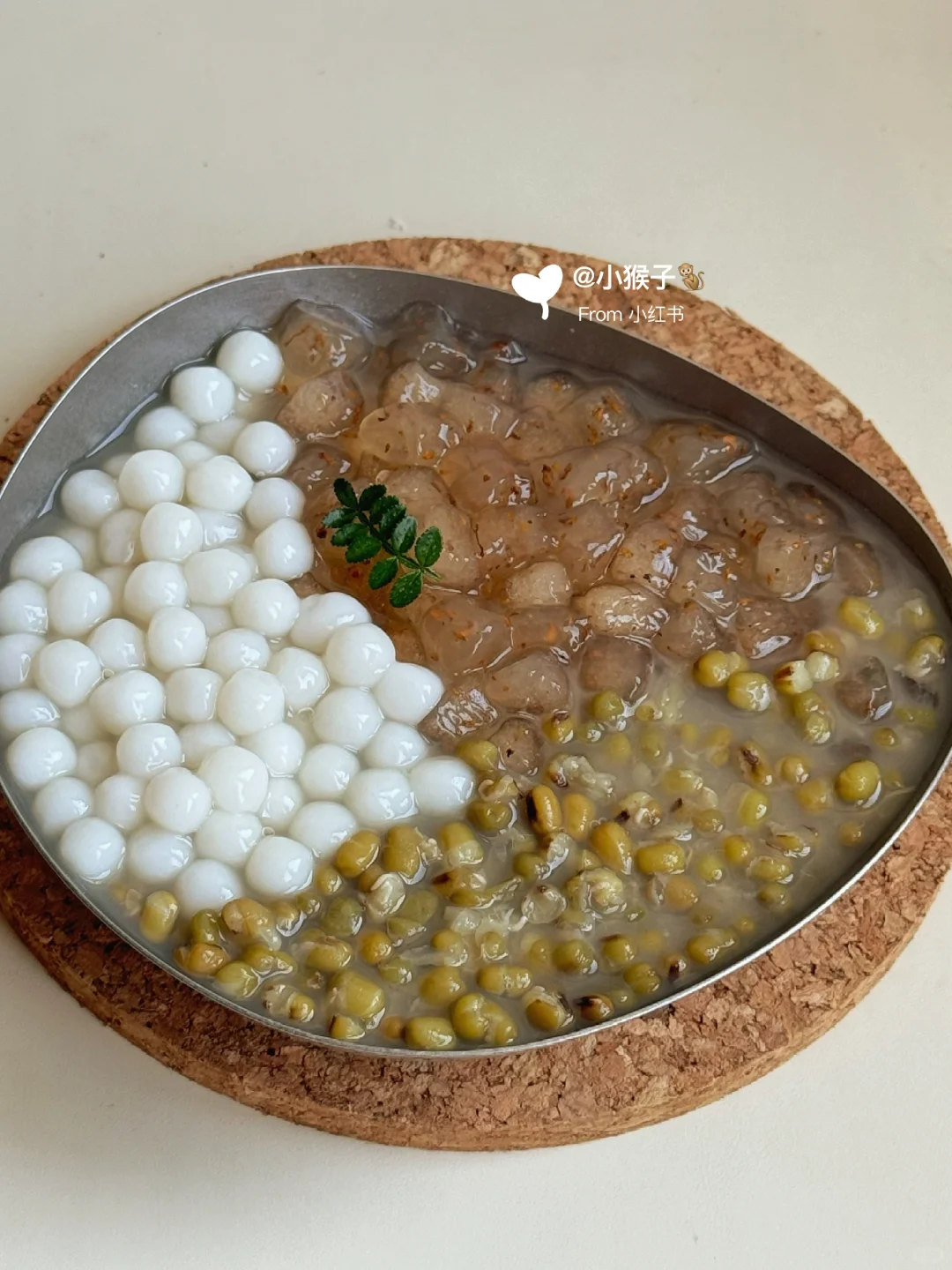 🥥桂花阿达子绿豆汤:煮好的绿豆汤放冰箱冷藏一下,好解暑啊,加了满满桂花香的桂花小阿达,一口接一口,停不下来了[派对R]