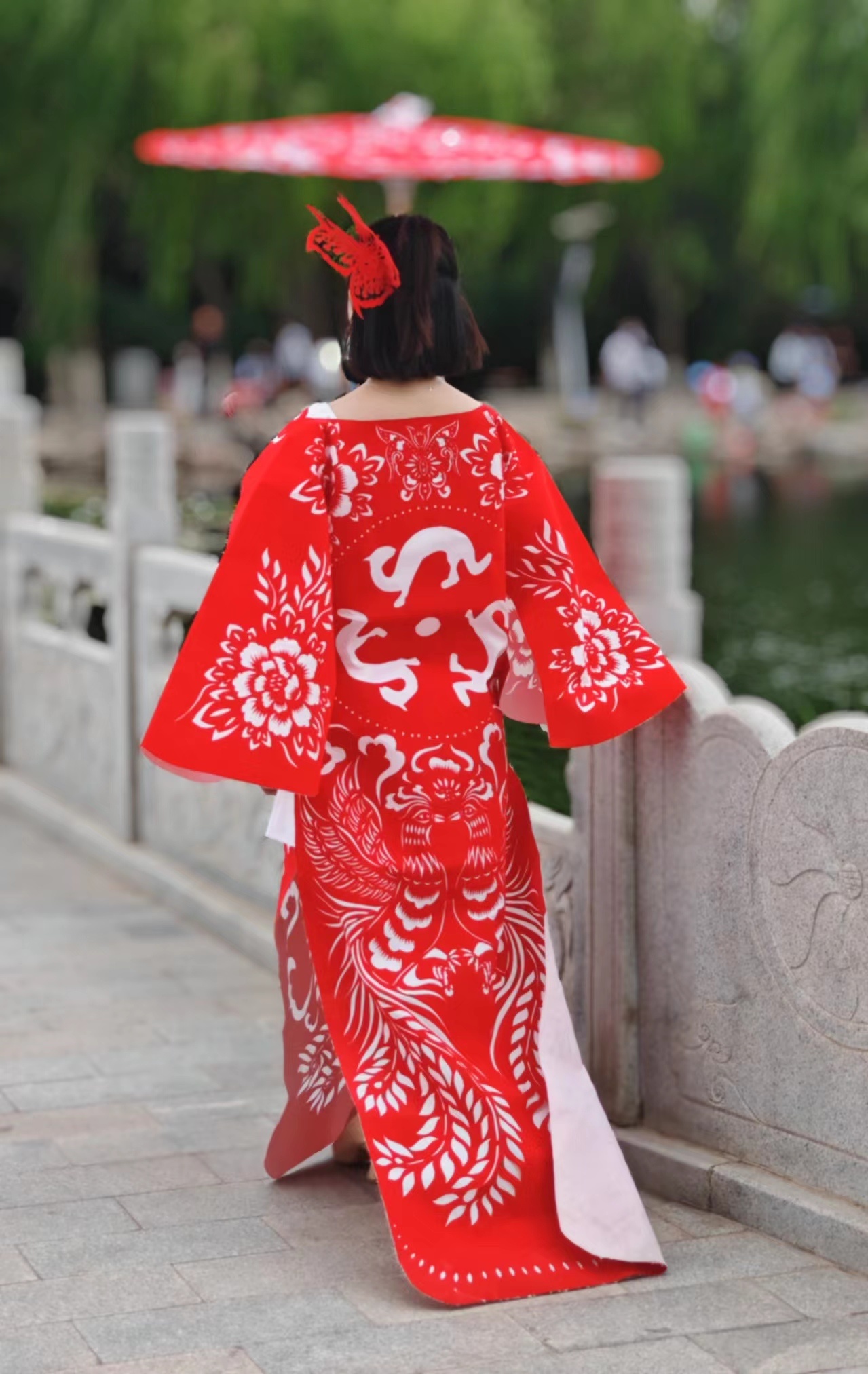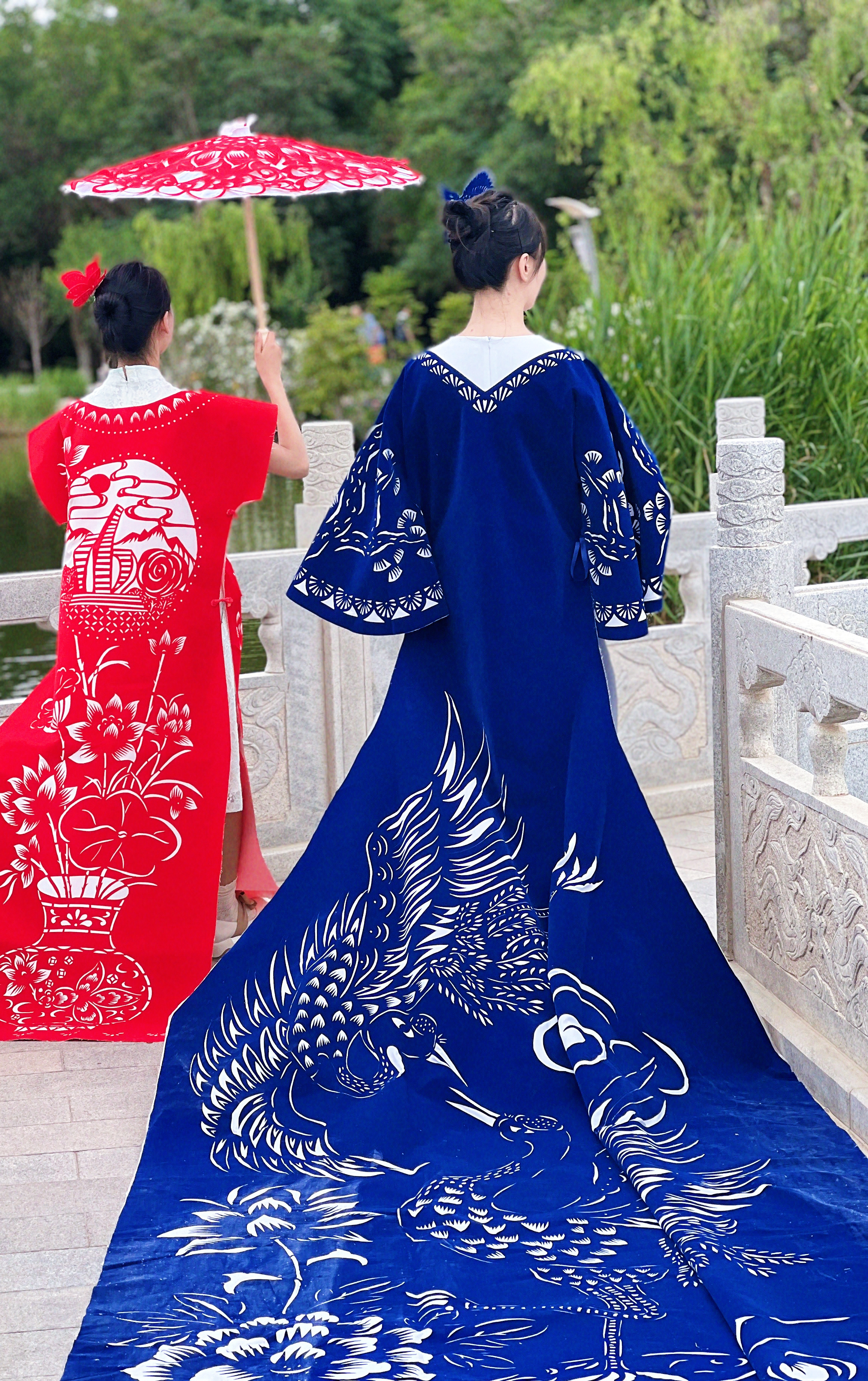 金川公园游玩,竟与非遗剪纸不期而遇,园内是震撼的剪纸服装秀 ,一纸一世界,一刀一乾坤,纸上生花自巧手,大千世界任剪裁,特别是非遗剪纸加服装的结合,是穿在身上的非遗,回头率爆棚!