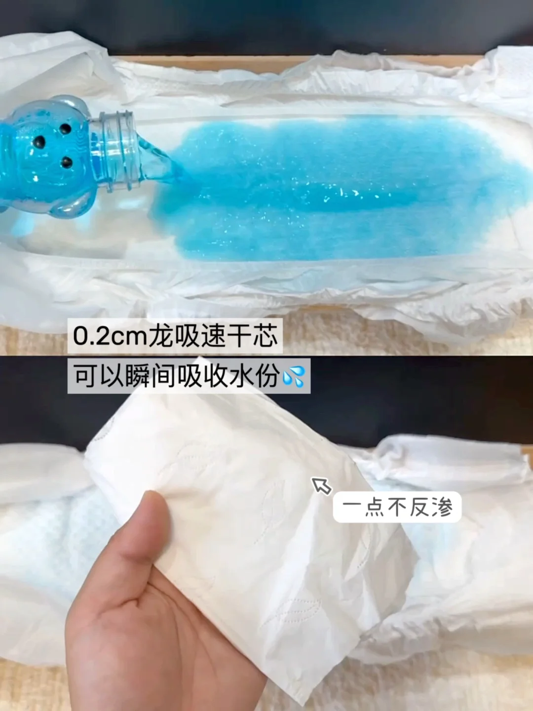 ▪️0.2cm龙吸速干芯 就算尿霸宝宝也不怕 尿尿再多也能瞬间干爽 不侧漏不反渗 宝宝一夜一片还不红pp