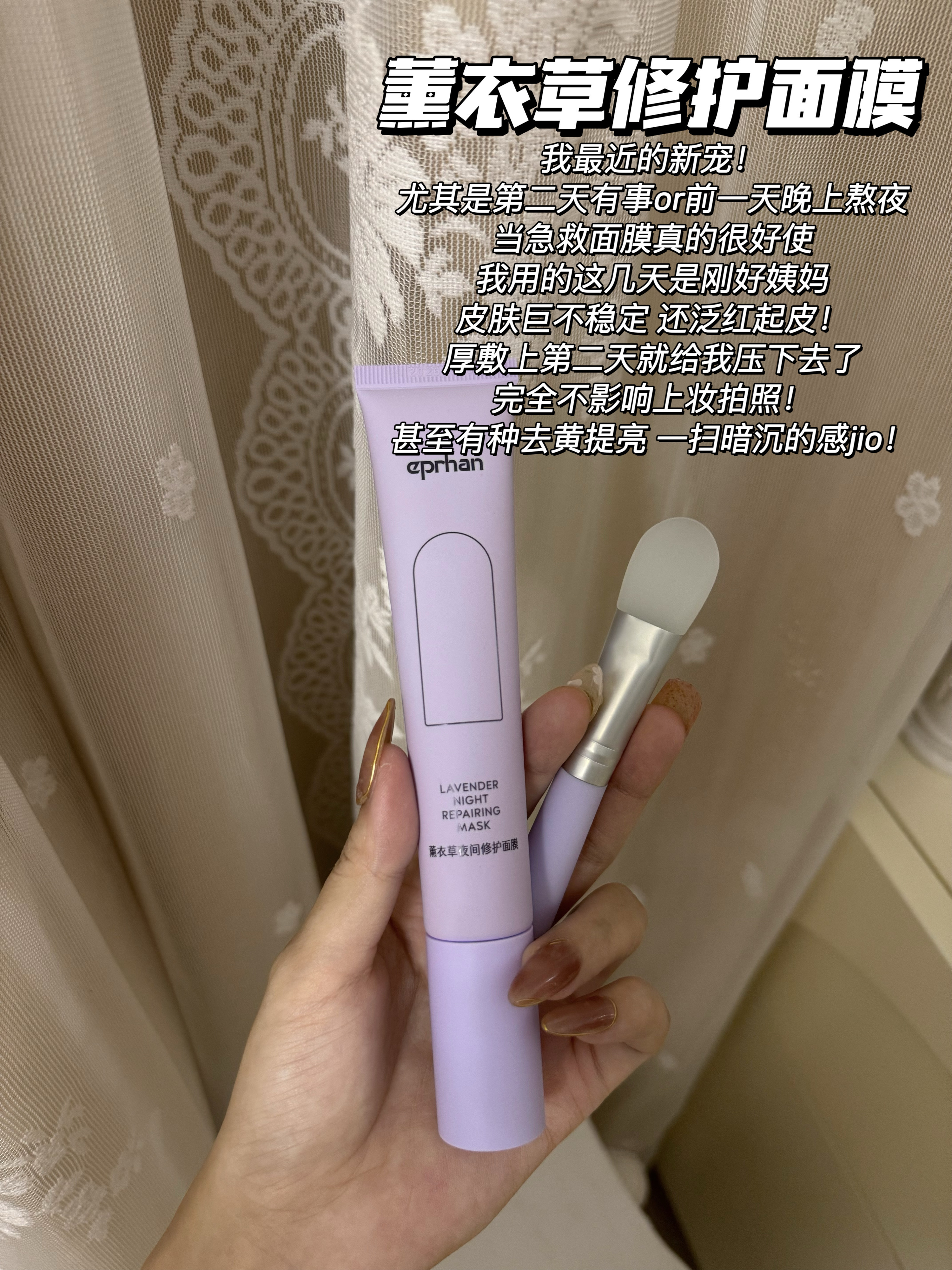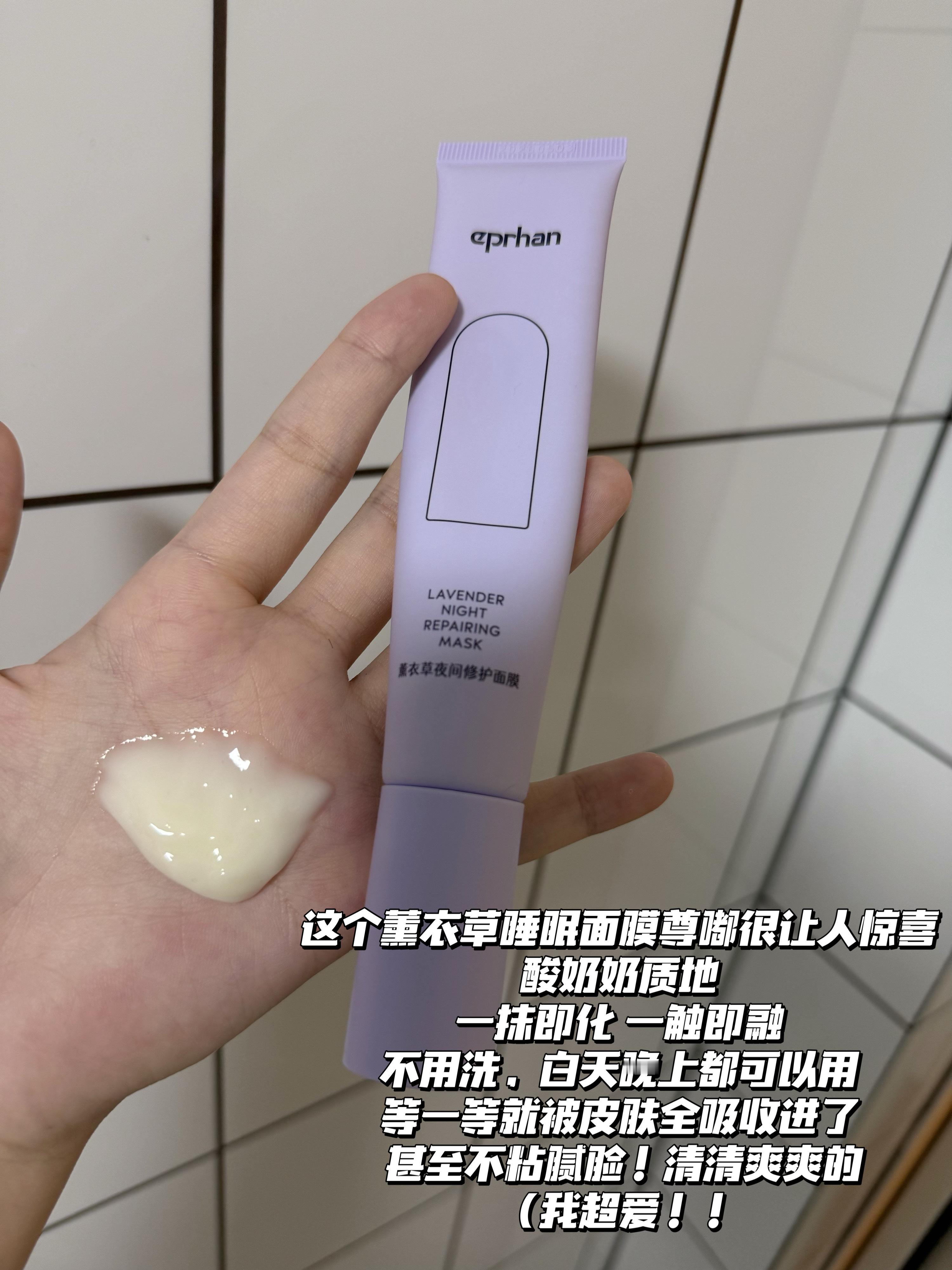 【薰衣草睡眠面膜】 是我最近一直在找的那种不用洗的睡眠面膜!我以为不洗在脸上会很粘!用了一次就发现完全不会!一会会儿就完全吸收了!很好用!尤其是在皮肤状况不好的时候,厚敷一下直接稳定!感觉会是我未来的常购选手!