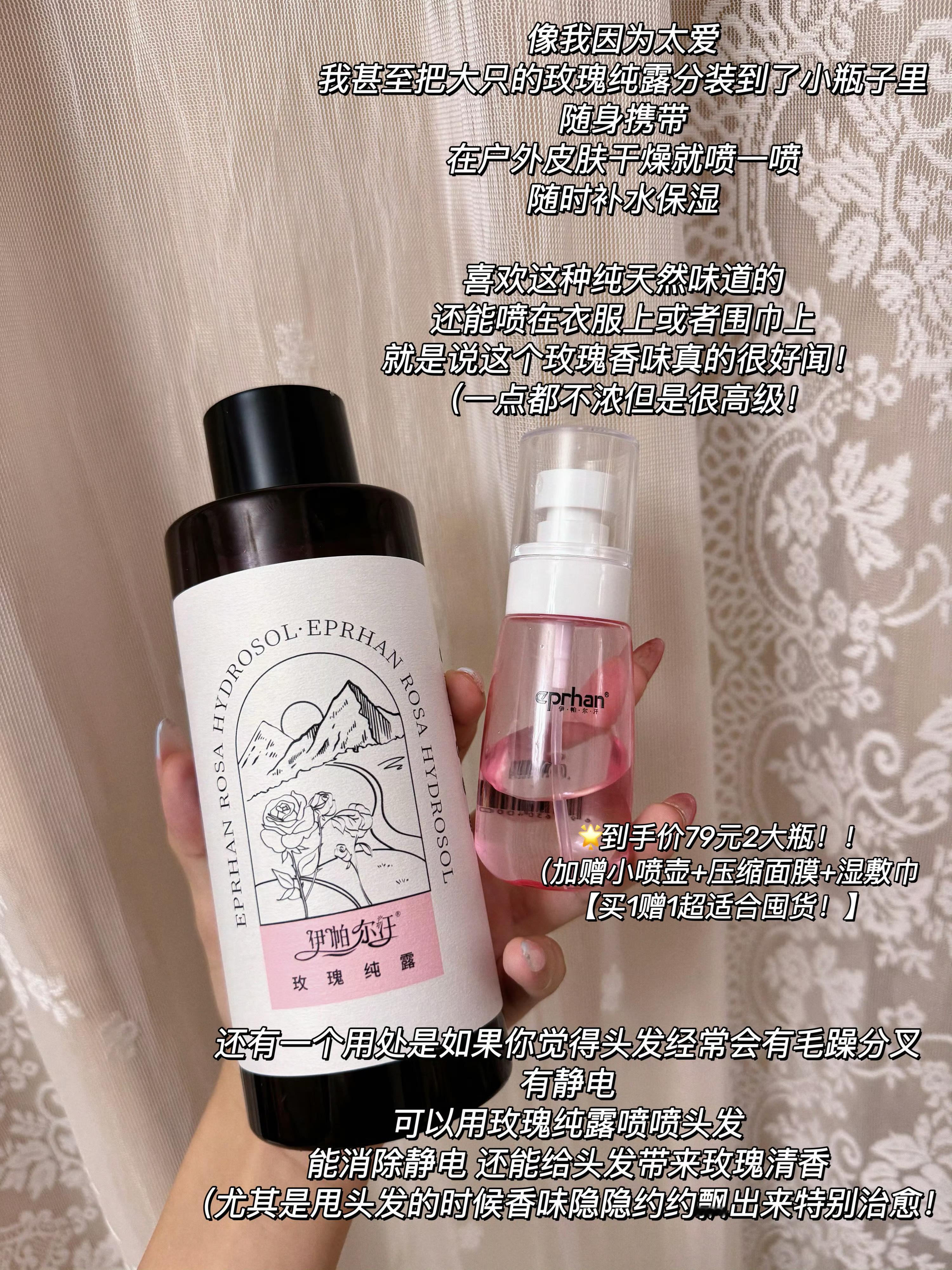 【玫瑰纯露】我个人的南波one。适合沙漠干皮的爽肤水。还有很多种用法见图。(比如说衣物香氛水/头发顺滑喷雾等等)