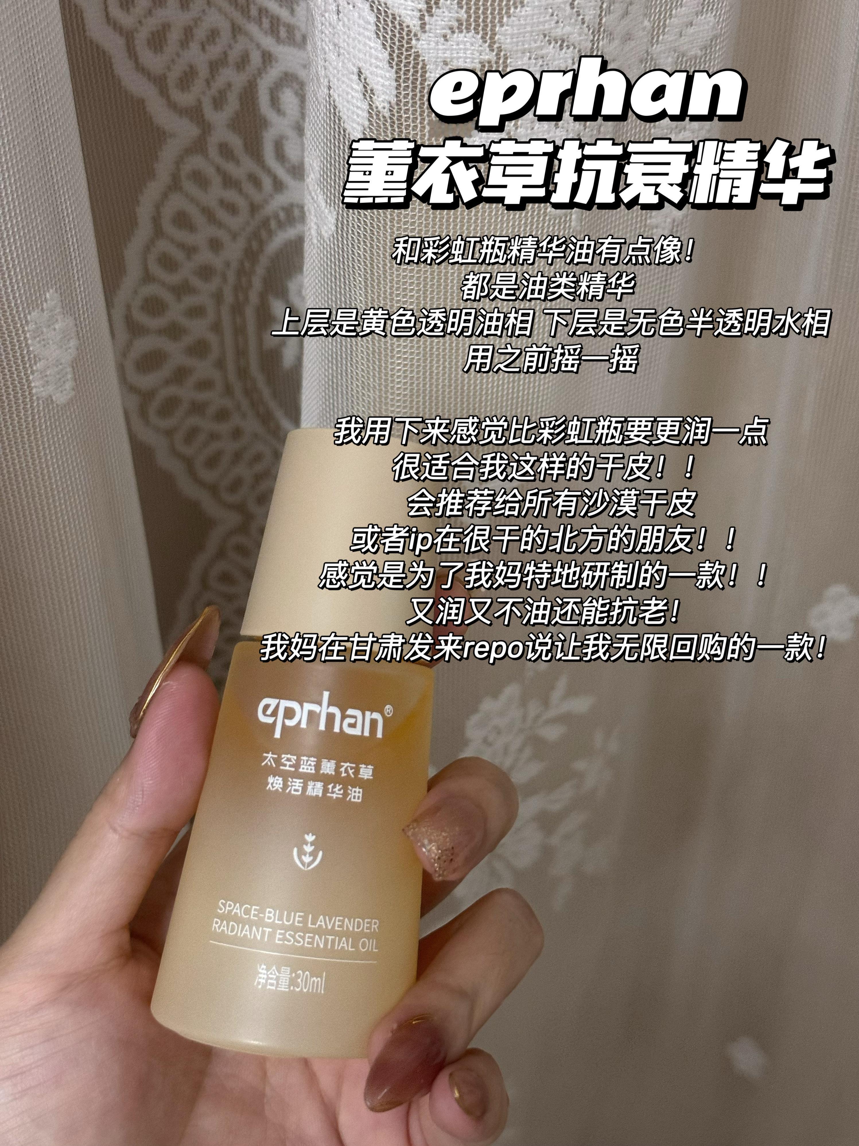 【薰衣草抗衰精华】和彩虹瓶有点像的无油感精华,用之前摇一摇,在手心搓热之后上脸。我妈的新宠,在甘肃的我妈用了两瓶,还一直在催我再给她买,生怕停产(如果觉得彩虹瓶好用的应该会很沉迷这个。【特别适合有抗老需求的干皮】