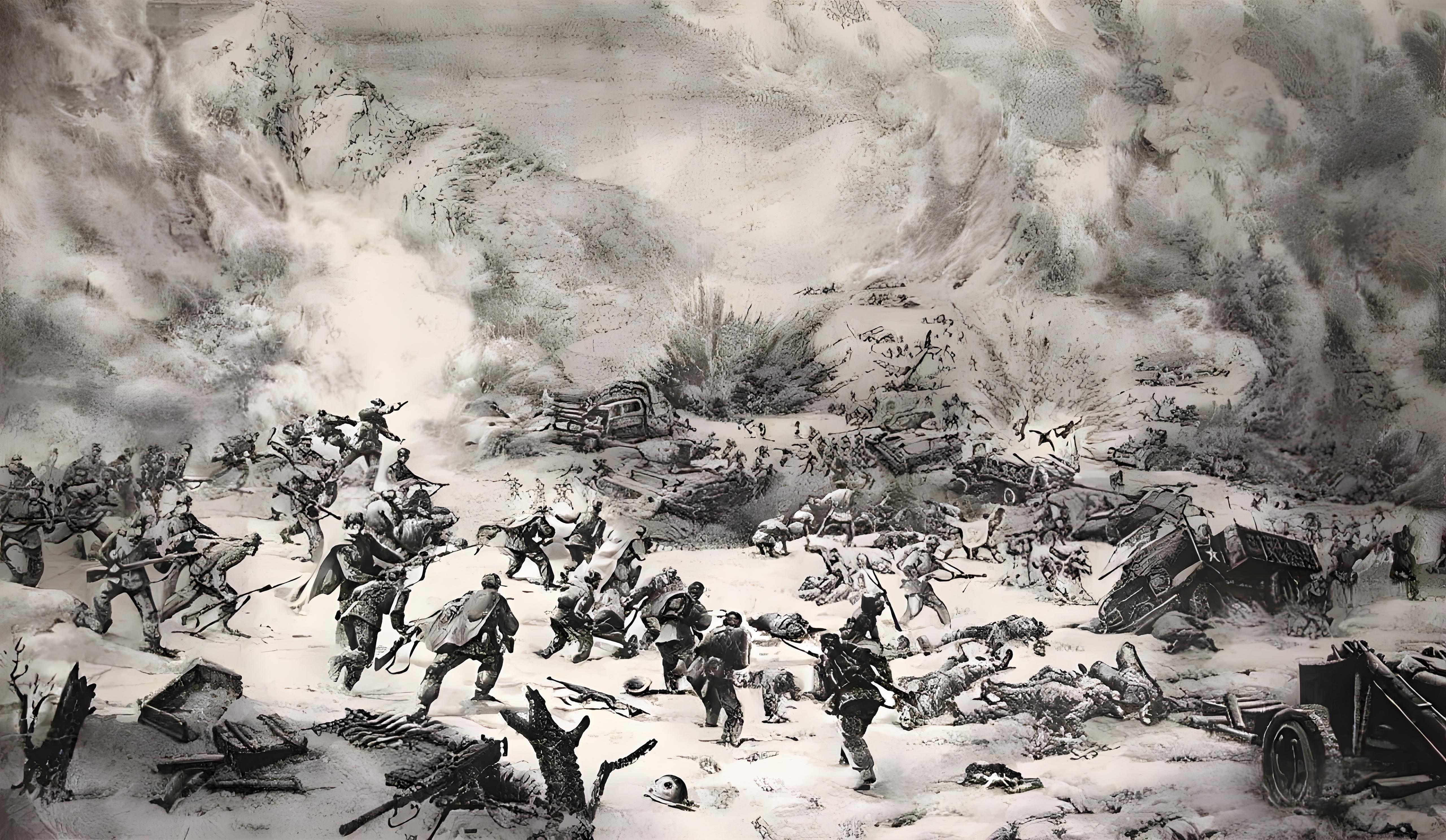 战士在弹药用尽后,就用刺刀、石头甚至拳头与敌人搏斗,阵地上到处都是惨烈的厮杀声。