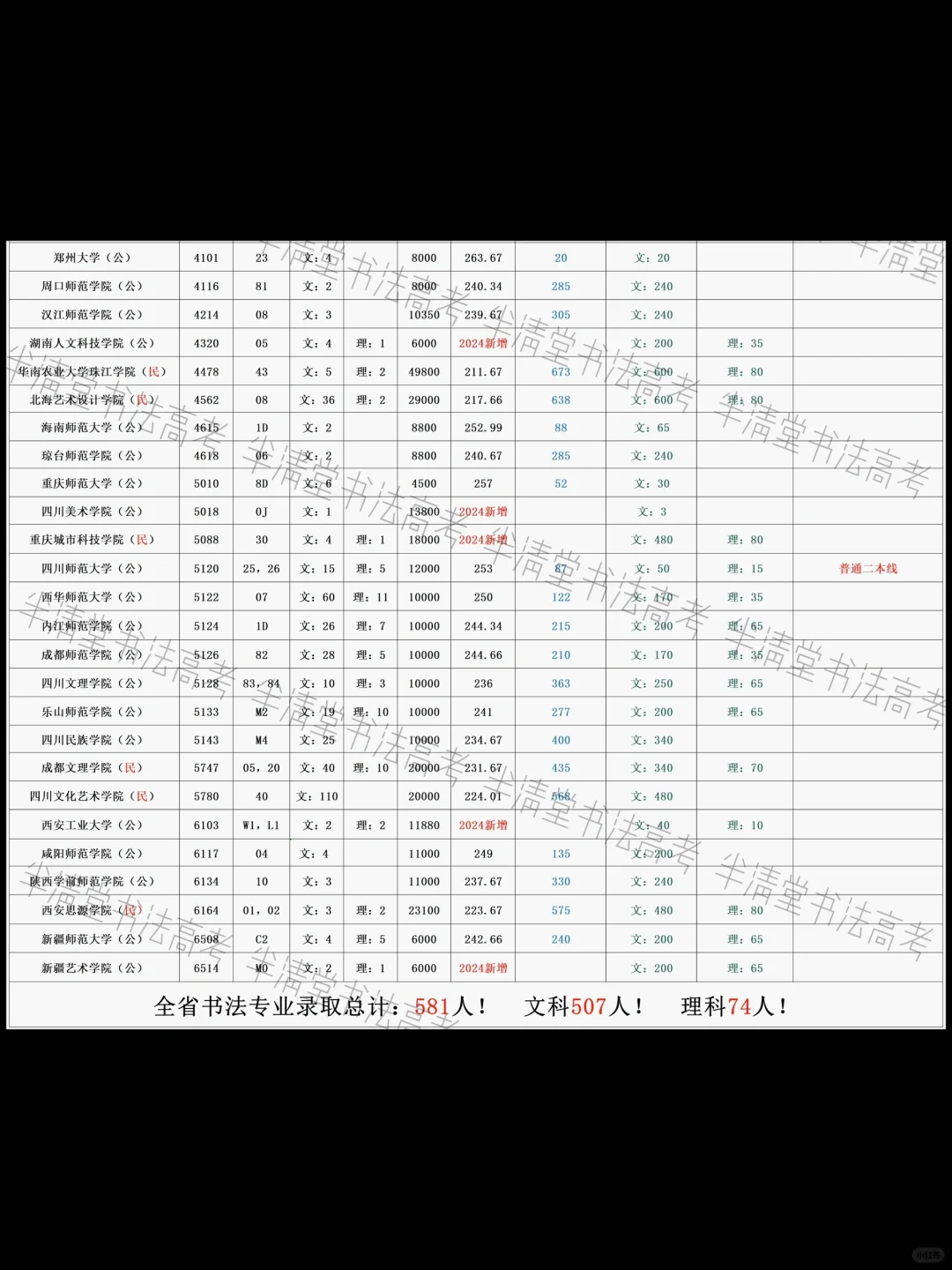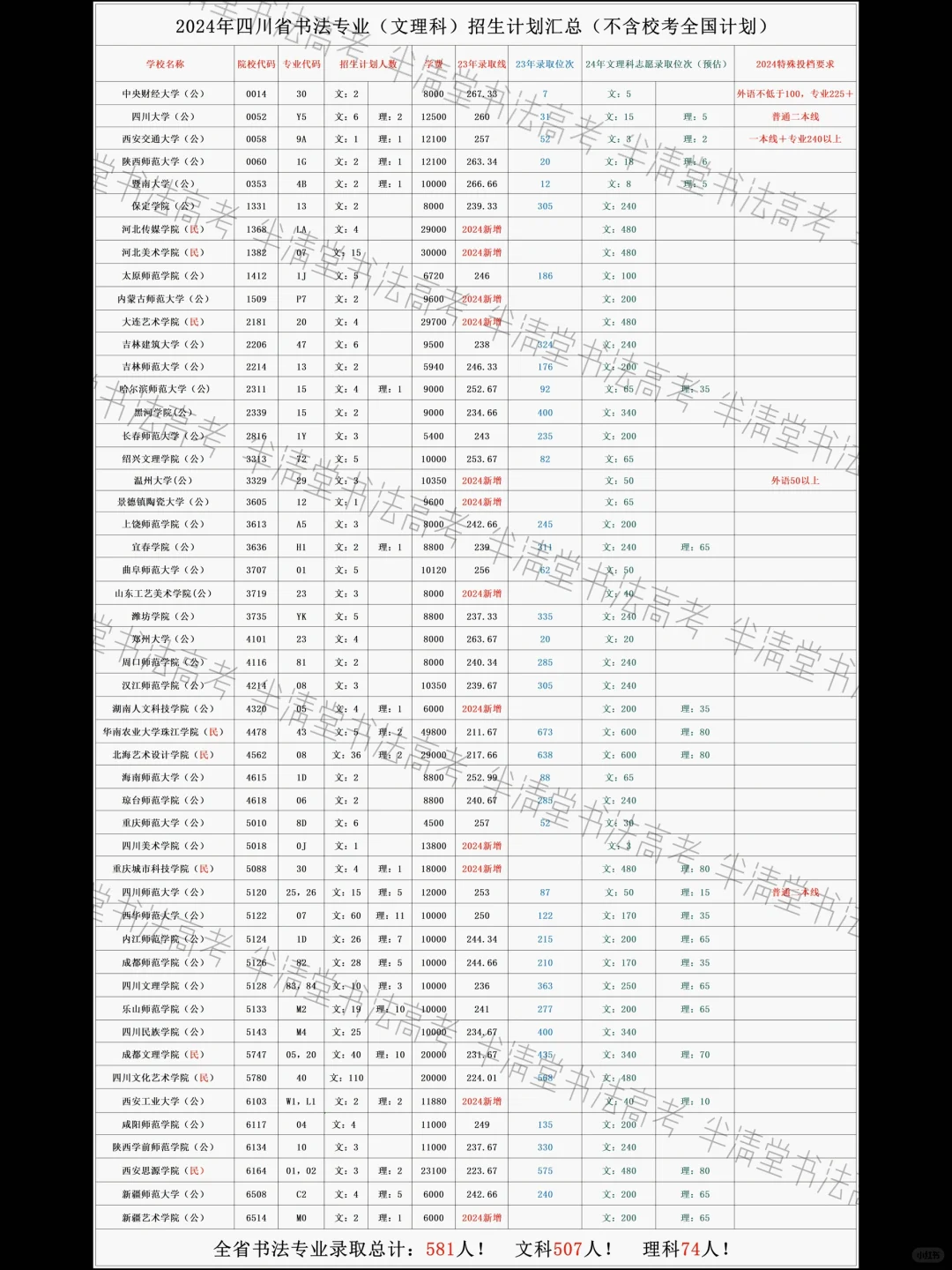 2024四川书法录取位次(预估)