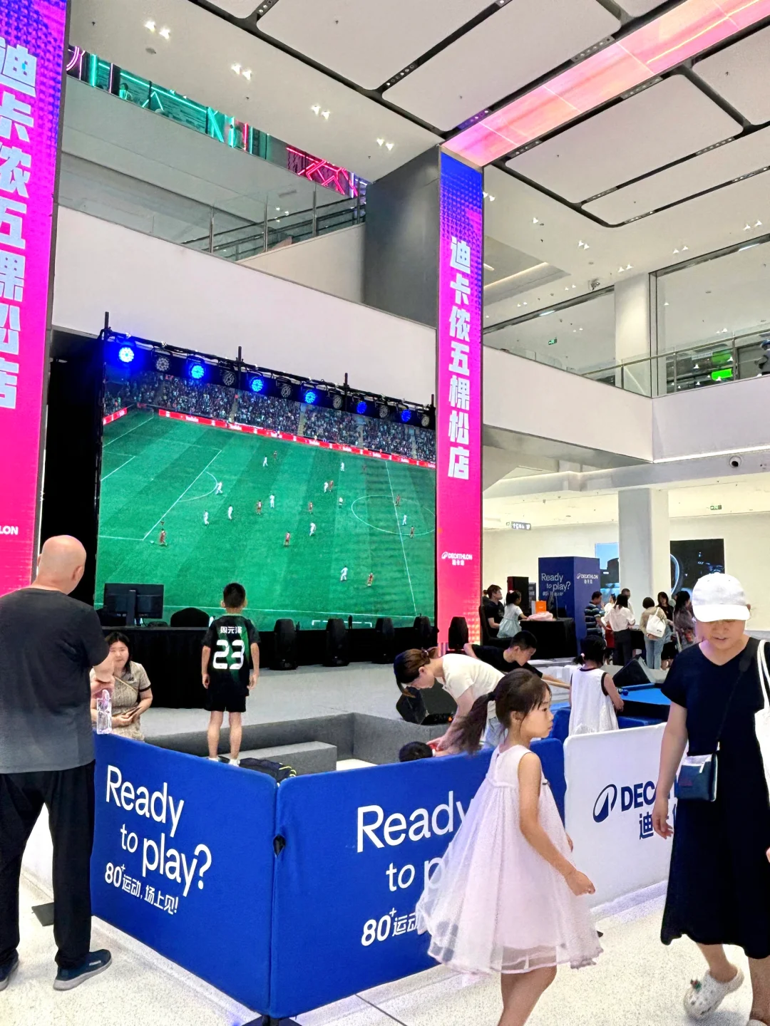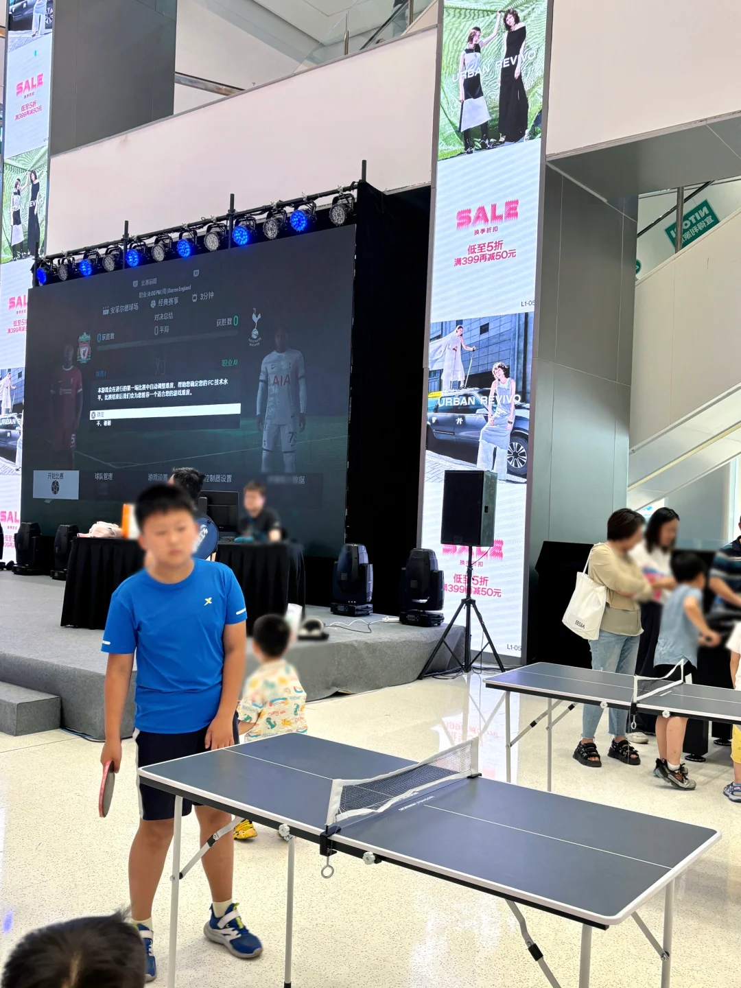 门店在五棵松万达广场1层,门口是体验区,和大屏幕播放实况足球⚽,可以体验台球、乒乓球🏓等小朋友超级喜欢。