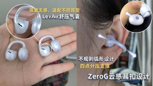 佩戴体验:南卡在佩戴感上是真的卷到了极致!全新的ZeroG云感耳扣设计,再加上LevAir零压气囊,直接把耳夹式耳机的舒适度拉满了。佩戴时靠零压气囊通过微气压缓冲,配合四点分压支撑,单耳还只有4.8g,轻到几乎没感觉,真正做到“零压悬浮”贴合。哪怕戴一整天办公追剧,或者跑步出汗,都能稳稳贴在耳朵上不晃不掉。耳夹连接桥用的是航空钛合金加高分子记忆材料,柔韧性和结实度都在线,弯折上万次也不会变形,百元价位里,论佩戴体验它真没对手!