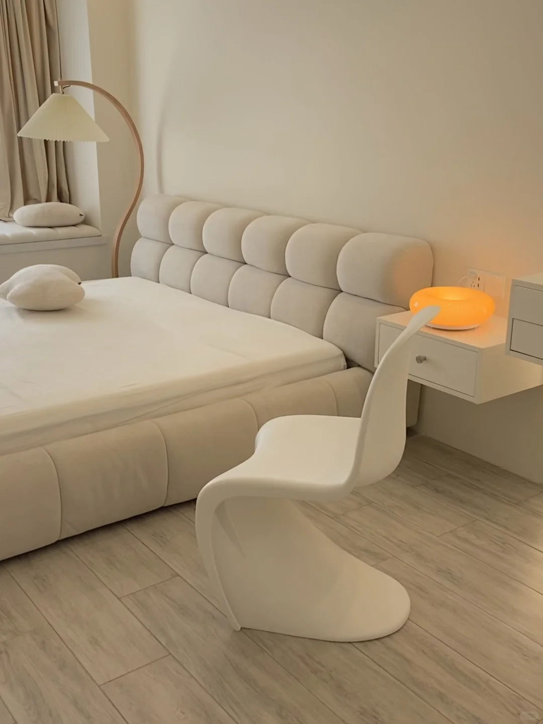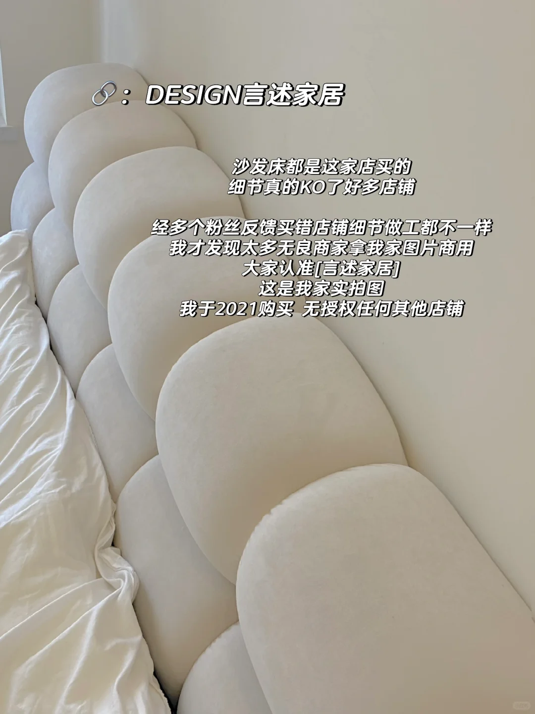 床的照片放在后面啦!奶呼呼的泡芙床真的超级温柔!!🥲真的很生气我家的床照片被很多商家直接盗图去商用,也有很多粉丝来说,看到我的图就购买了,结果买错店铺质量都不一样,唉,这套图我21年发在的我也没授权给其他人,大家想买的认准言述家居哦!~