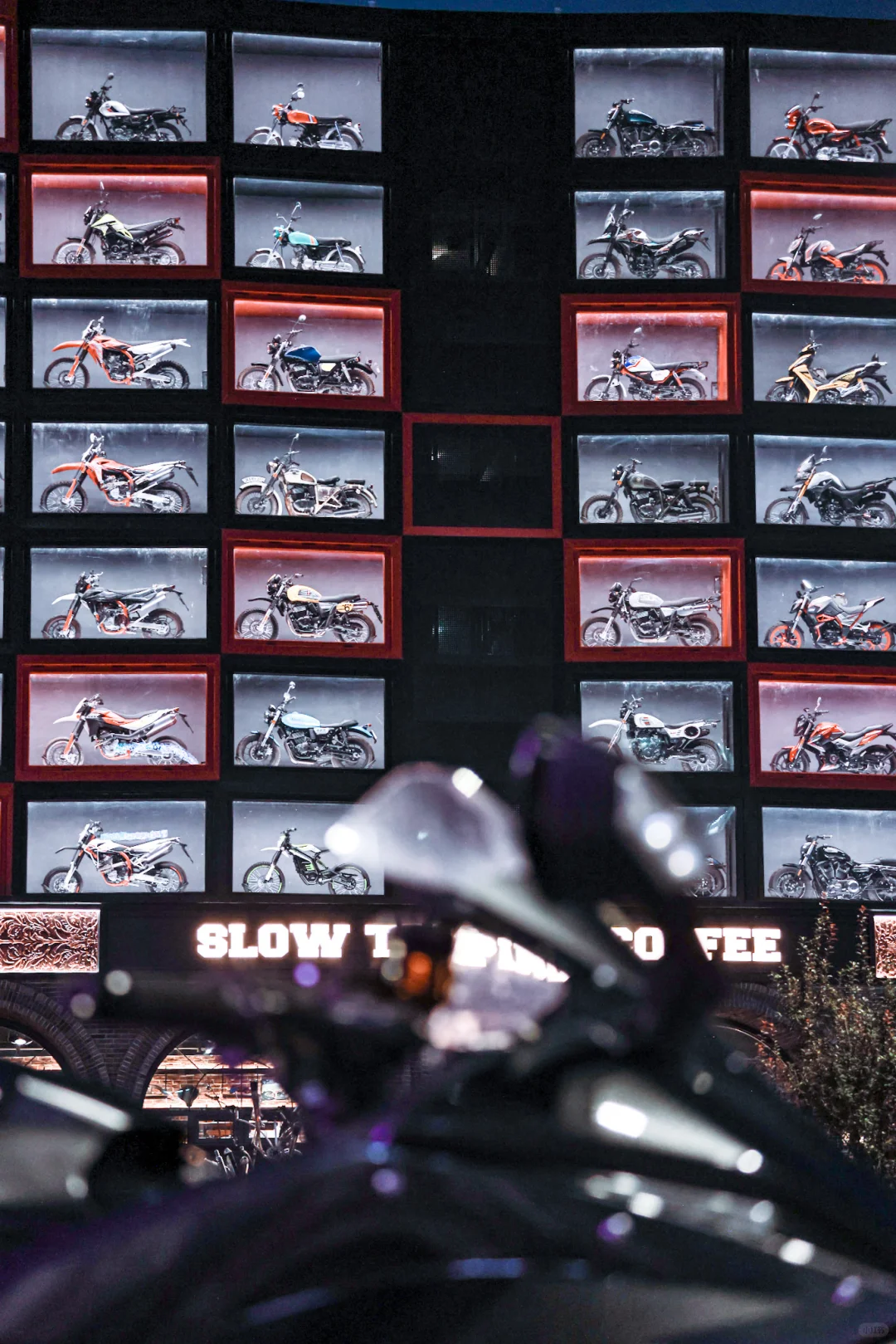 慢捣公元最有特色的当属那一面机车墙了