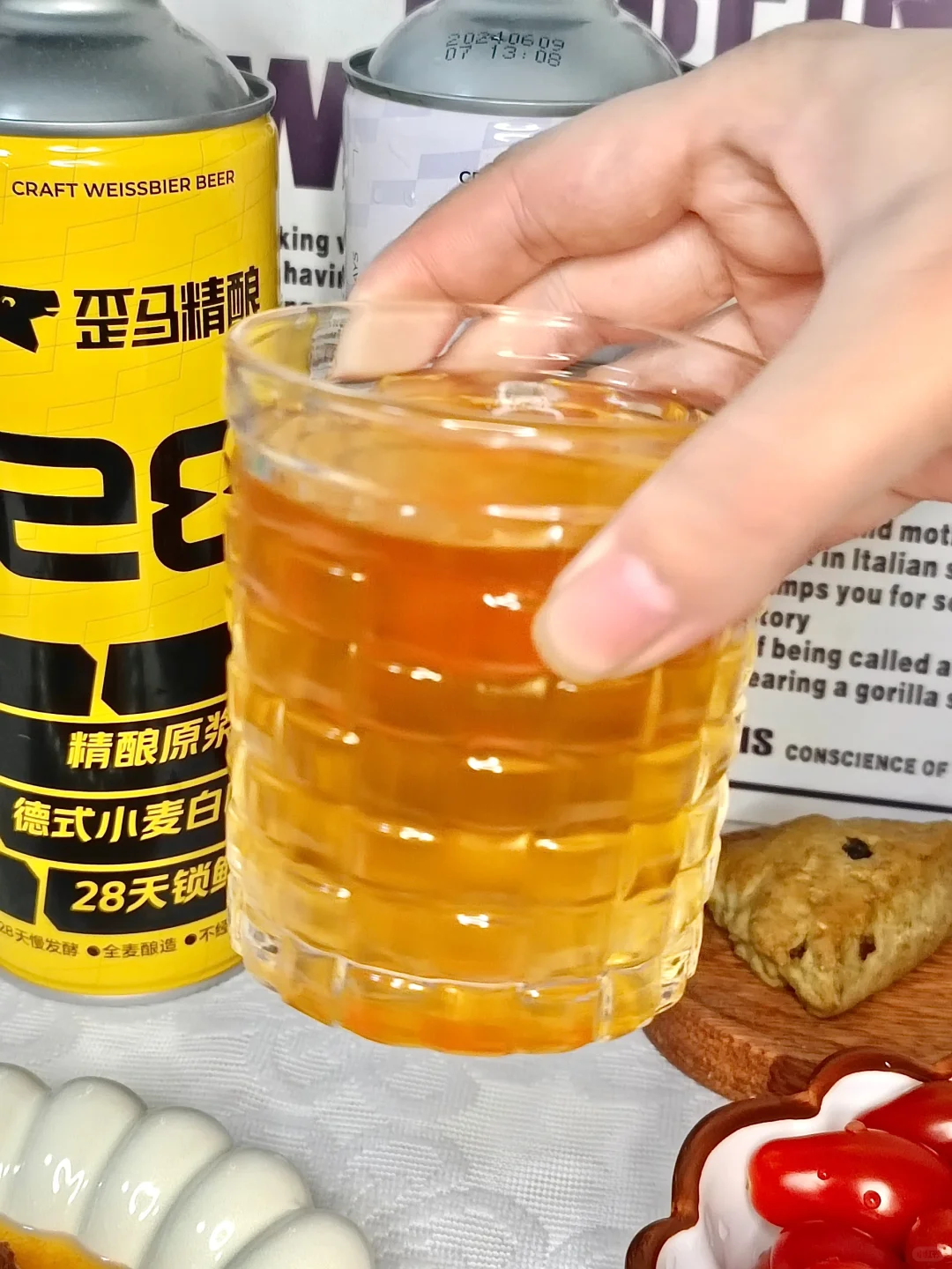 都是经过28天慢发酵,口感很醇厚,一开盖就闻到了原麦香气很浓郁,尤其是冰镇过后就能感觉到轻微的沙口感很舒服!!!