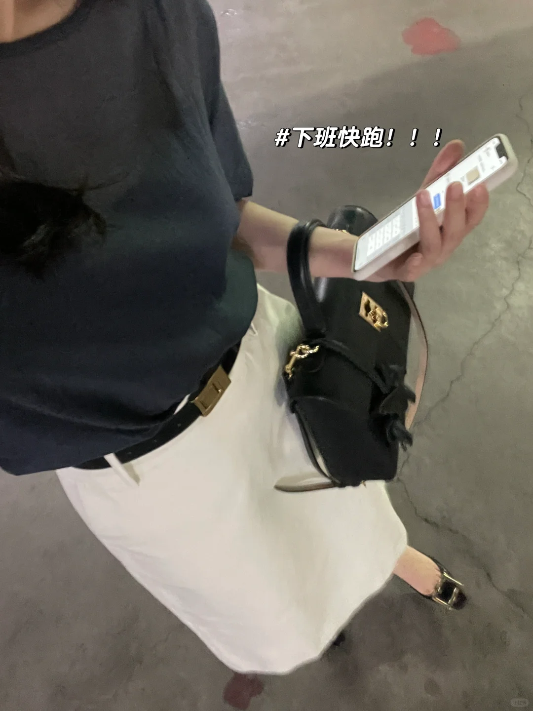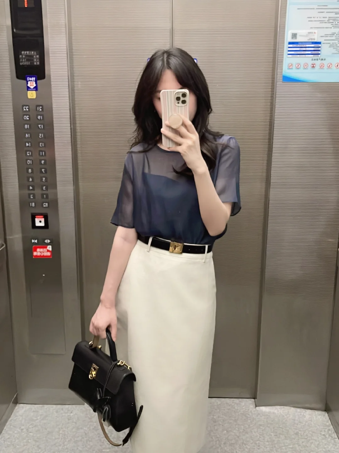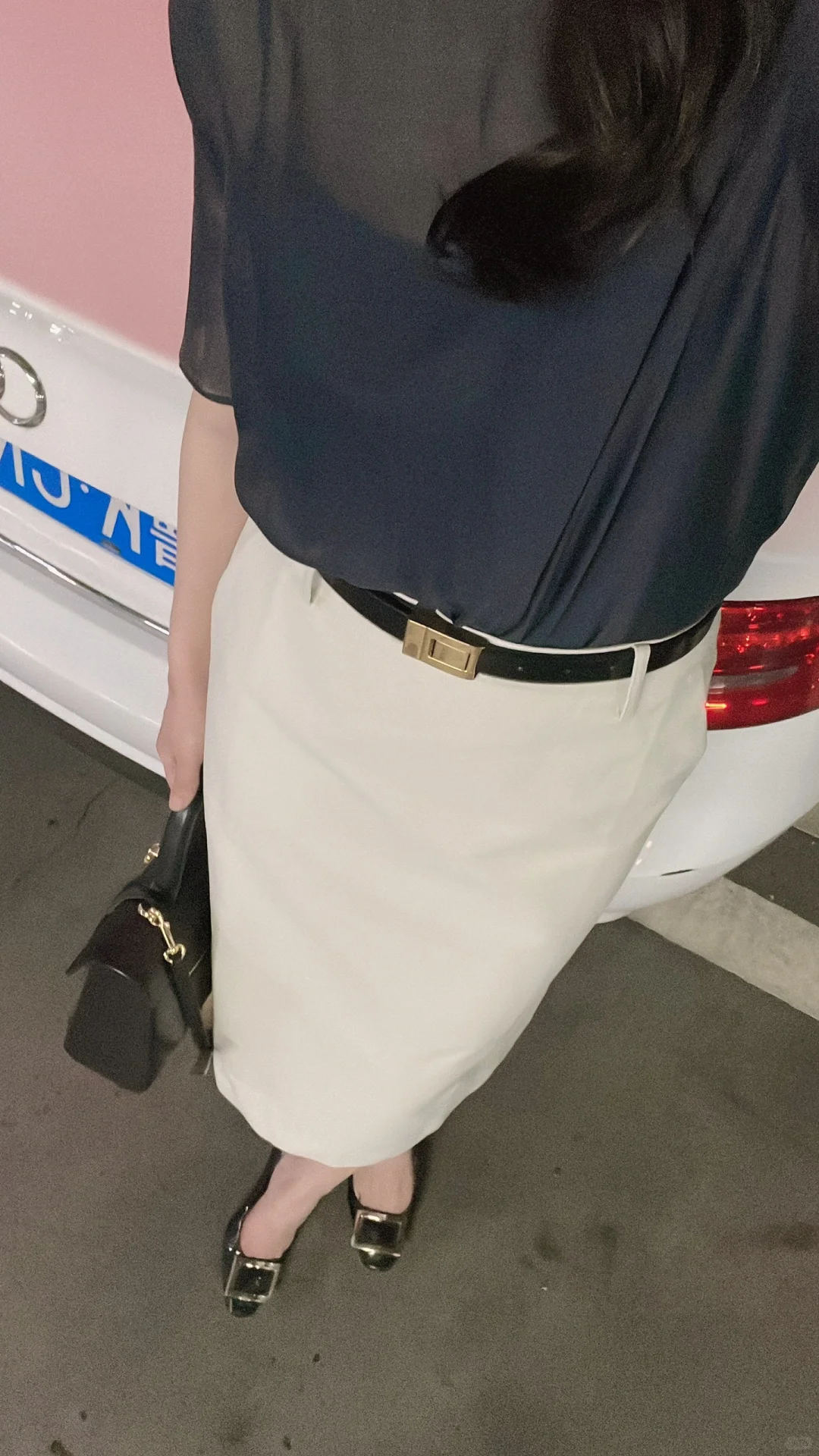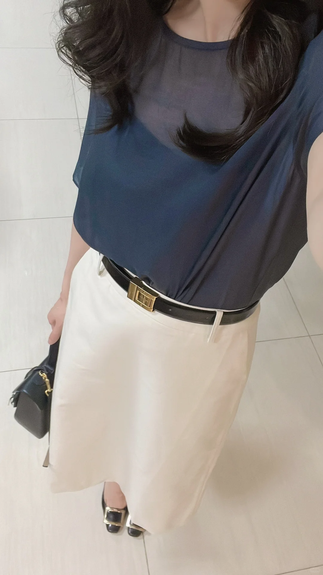 初夏通勤☕藏蓝上衣➕米色半裙 气质感满满~