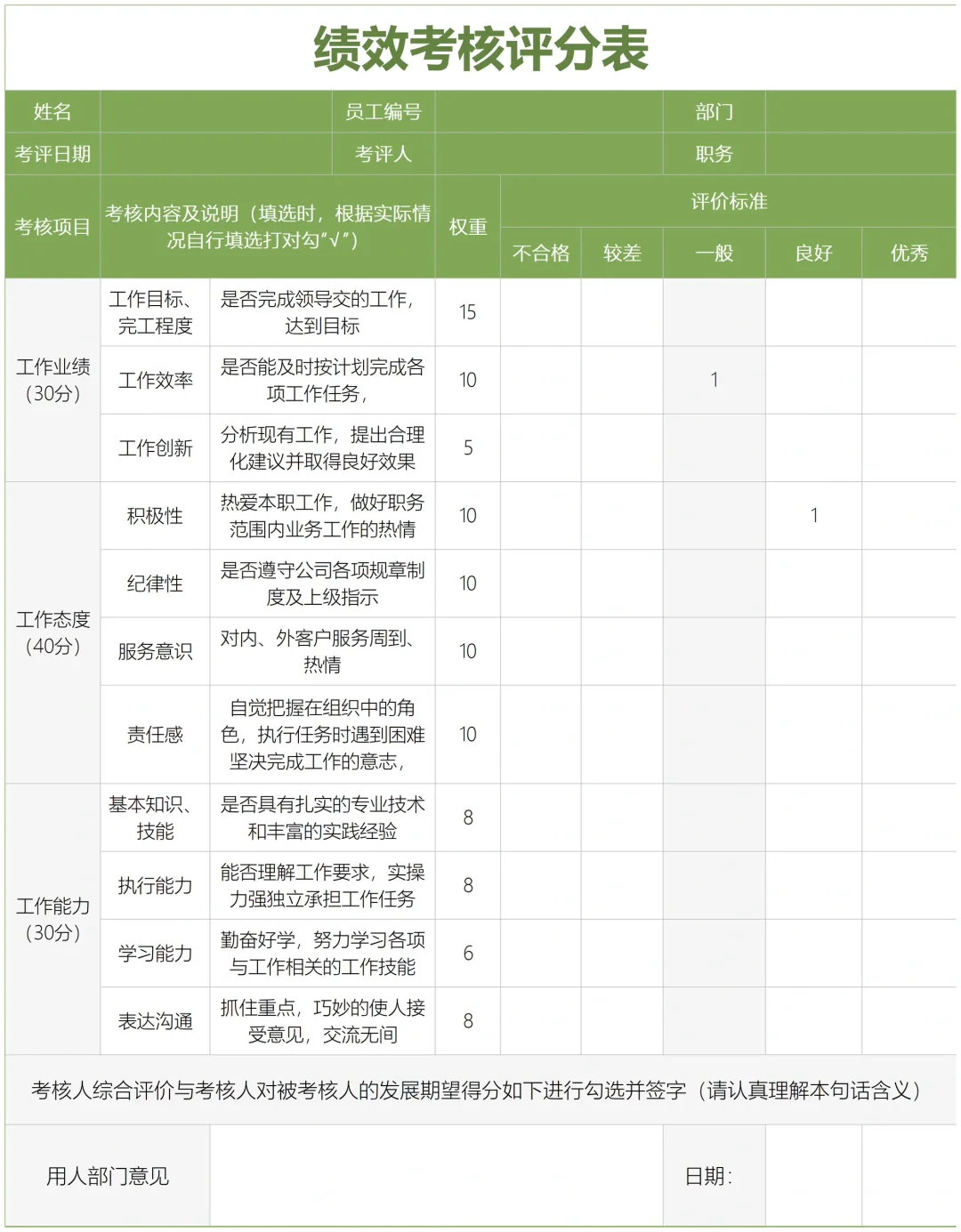 ✅工作计划周报表,绩效考核评分表