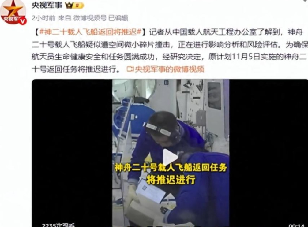 “等了半年盼着航天员回家,结果传来‘返航推迟’的消息 —— 神舟二十号疑似被太空碎片撞了!6 名航天员安全吗?这‘太空拦
