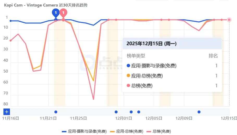 Kapi Cam上线至2025年12月12日APP Store端全球下载量变化,数据仅供参考。来源:点点数据