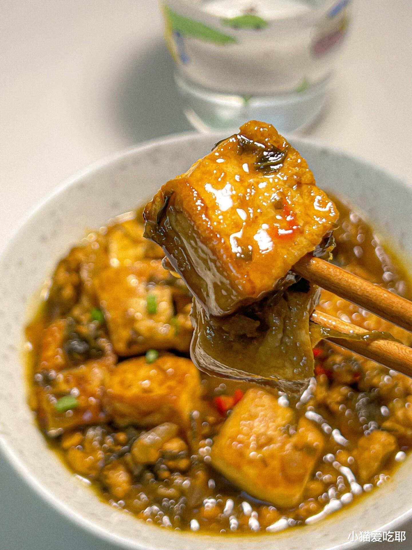 把之前煎好的豆腐铺在酸菜上,再倒上料汁。料汁可以是简单的酱油、蚝油和一点水淀粉调成的,这样能让豆腐更好地吸收汤汁的味道。盖上锅盖,小火焖煮3分钟。这3分钟,豆腐在锅里慢慢吸收着酸菜和肉沫的香味,变得越来越美味。