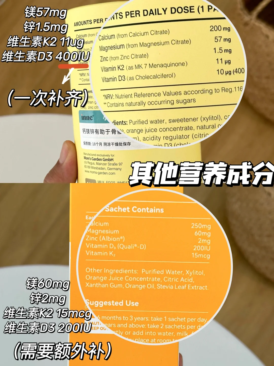 补钙其实不是单方面的补充,钙搭配上镁锌、D3K2也能更好帮助宝宝吸收钙,补钙更高效