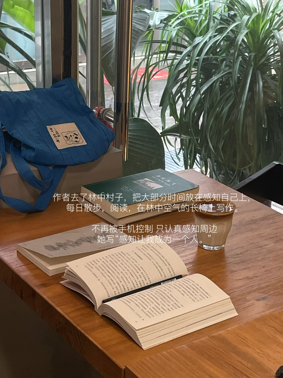 作者去了林中村子,把大部分时间放在感知自己上,每日散步,阅读,在林中空气的长椅上写作。