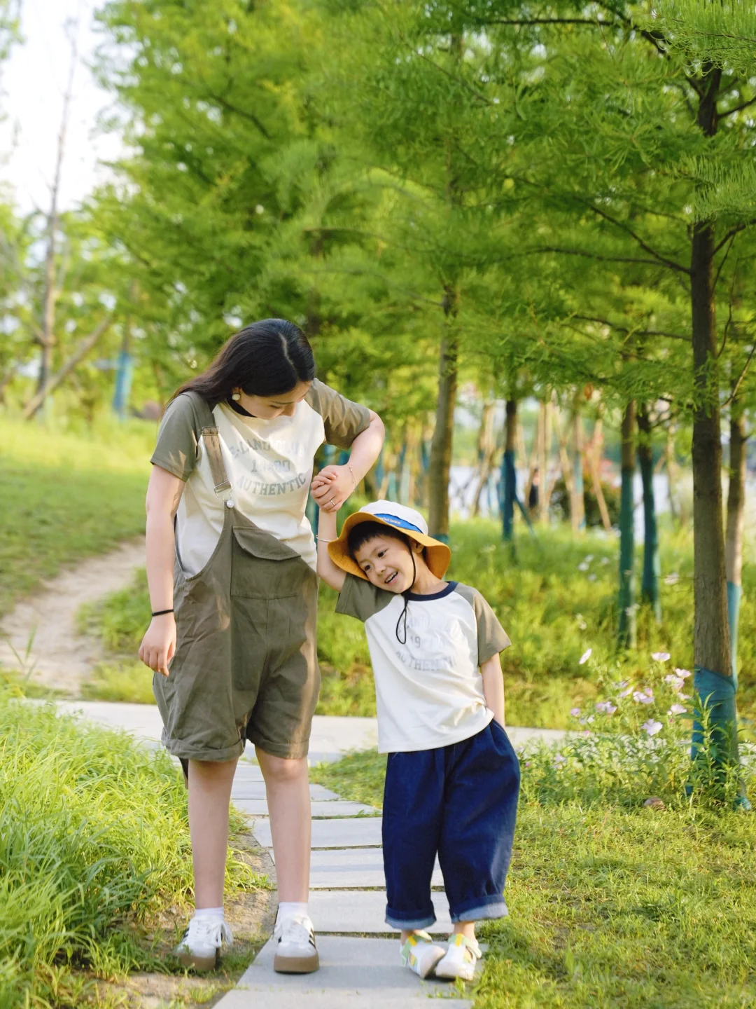 我们周末总是一起去户外拥抱自然 一起吹吹风 感受下蝴蝶飞过的瞬间 也一起捕捉很多美妙的事儿 穿搭呢我们总是以舒适为主 这次整个色系搭配了绿 完全与自然融为一体 拿出相机卡擦卡擦 就是一组回忆里的大片