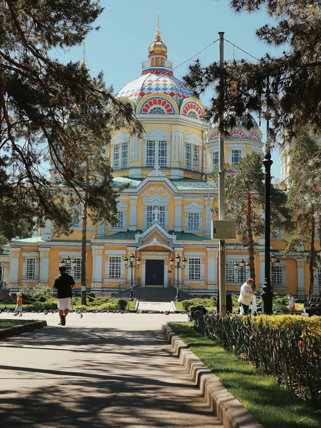 升天主座教堂Zenkov Cathedral:世界上现存第二高木结构建筑,也是阿拉木图历史最悠久、最大的教堂。鲜红黄蓝绿的多巴胺配色特别好看。