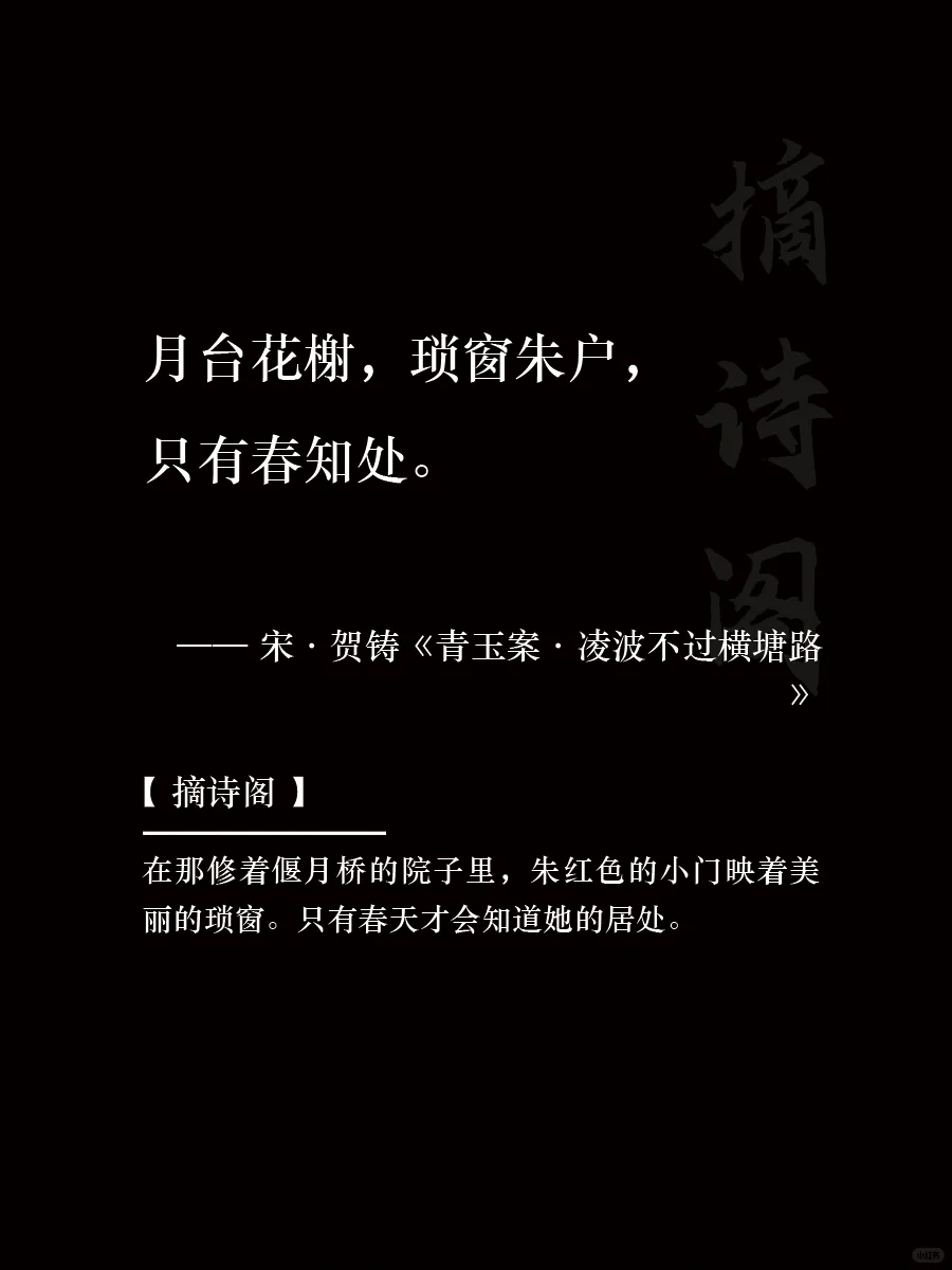 《青玉案》摘录有误,原词为“月桥花院,琐窗朱户 ,只有春知处”