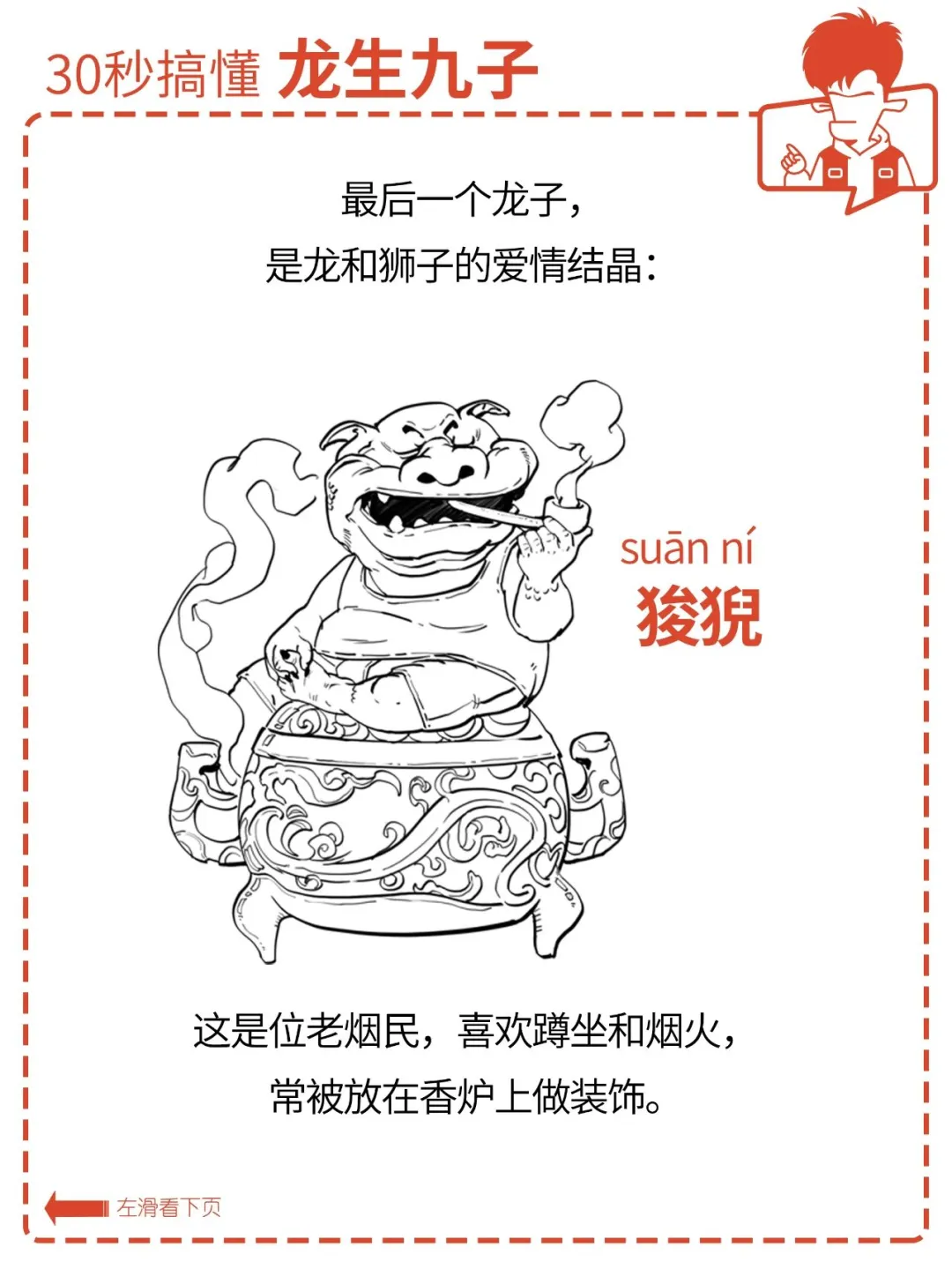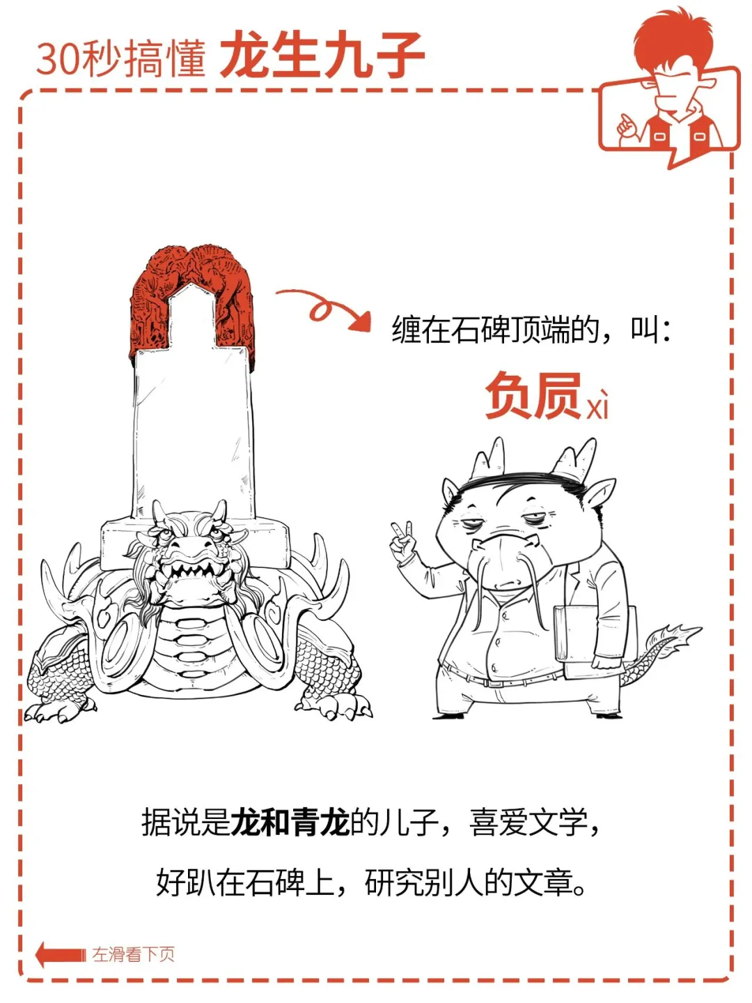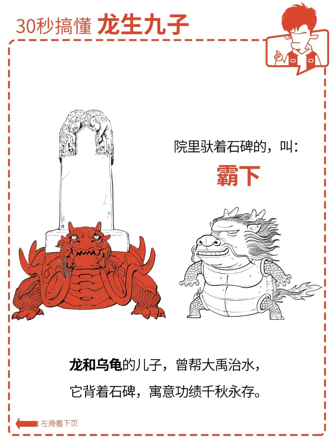 俗话说:龙生九子,各有不同。 九位的名字你可能不熟, 但在生活中,你一定见过它们。 它们有的在房顶上,有的在琴上, 还有的在香炉上…… 它们都是谁?怎么分辨? 各有什么特点? 为什么同一个爹,差别这么大? 今天混子哥就用 30 秒, 帮你搞懂龙生九子。