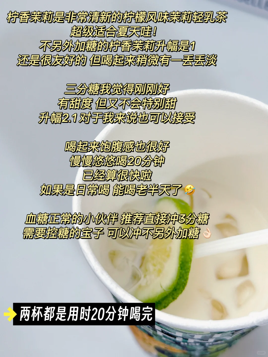不另外加糖的柠香茉莉升幅是1,还是很友好的,但喝起来稍微有一丢丢淡。