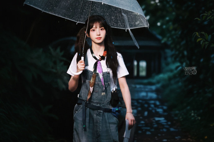双马尾+背带裤+彩色丝带,是古灵精怪的鬼马少女小田!