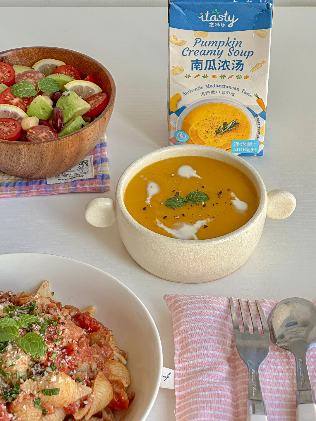 健身期间吃的比较健康,入手了我的地中海厨房套餐。做三个菜也没用多长时间,味道都在线。番茄罐头直接炖汤或者炒菜都方便,南瓜浓汤直接加热就可以,意面也都是可可爱爱的形状~省事又健康[种草R]推荐给姐妹们[种草R]