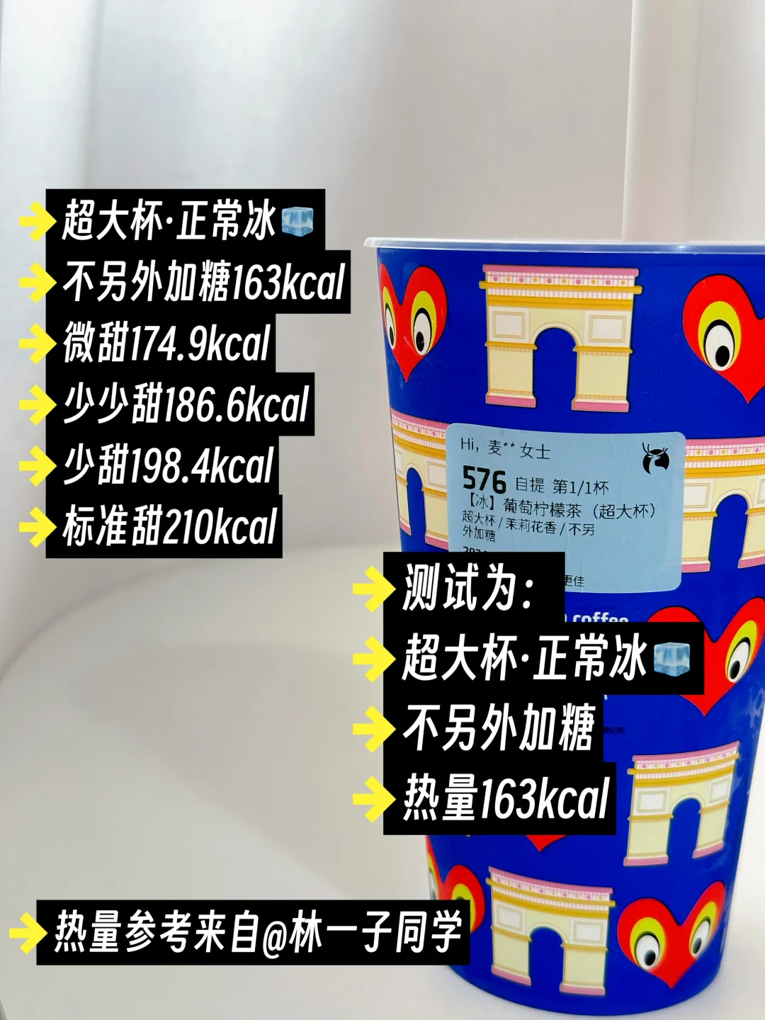 测试为超大杯·正常冰🧊不另外加糖 热量163kcal