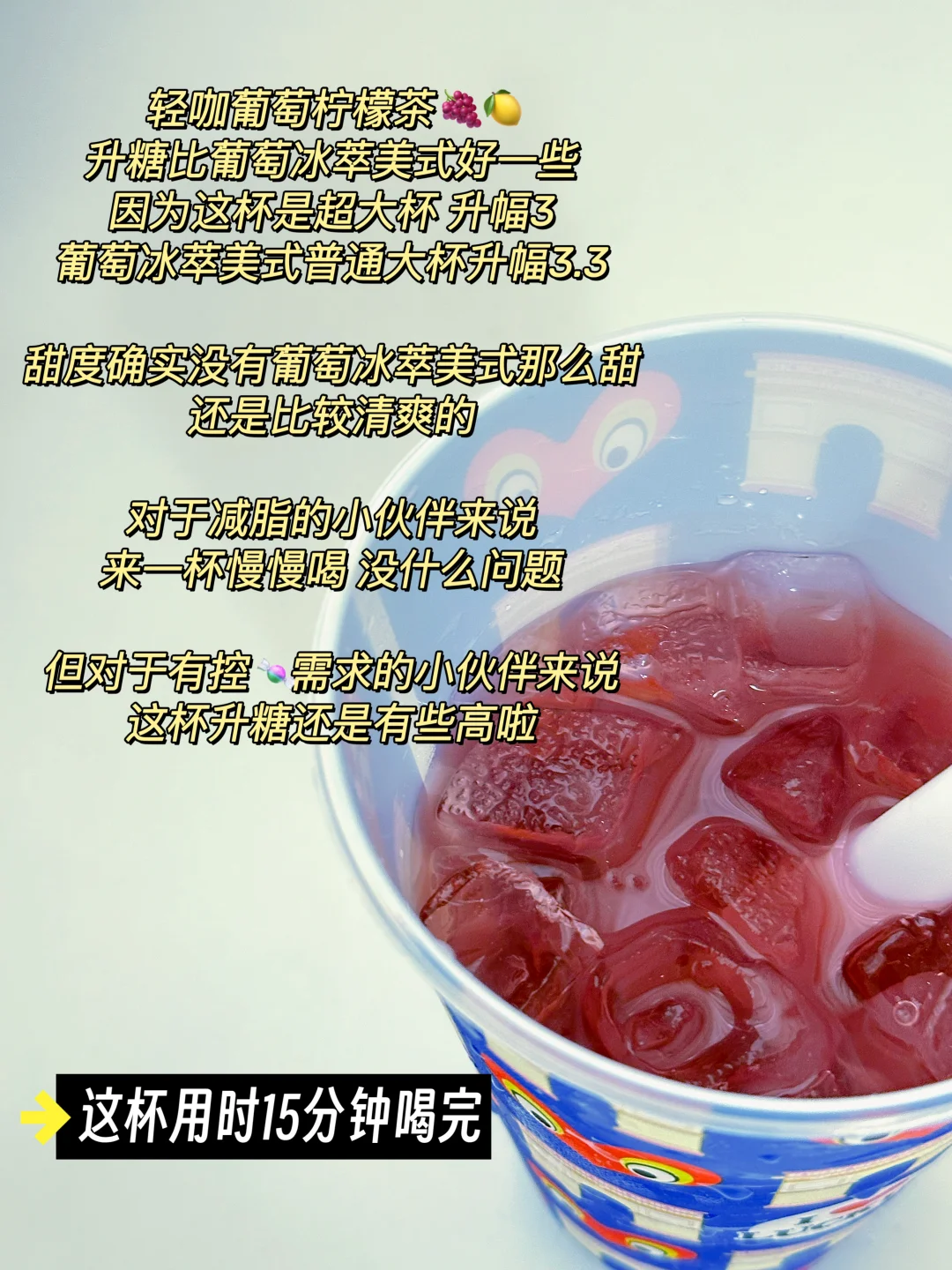 升糖比葡萄冰萃美式好一些,因为这杯是超大杯,升幅3〰️葡萄冰萃美式普通大杯升幅3.3〰️