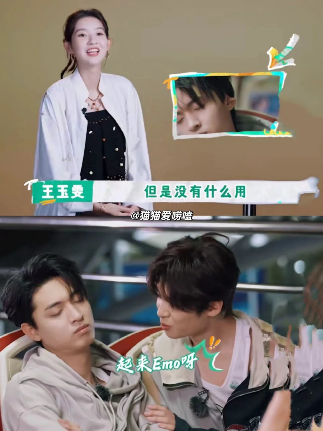 还有他和王玉雯一直在大声飙歌,秦霄贤和林一完全get不到,一个都闭上耳朵睡着了,一个捂着脸[笑哭R]
