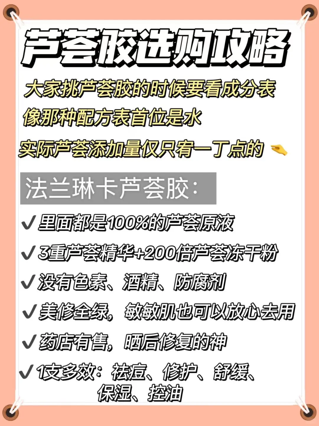 大家挑芦荟胶的时候要学会看成分表