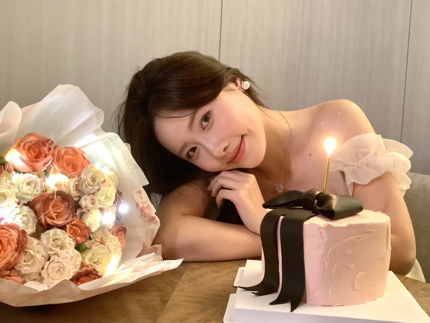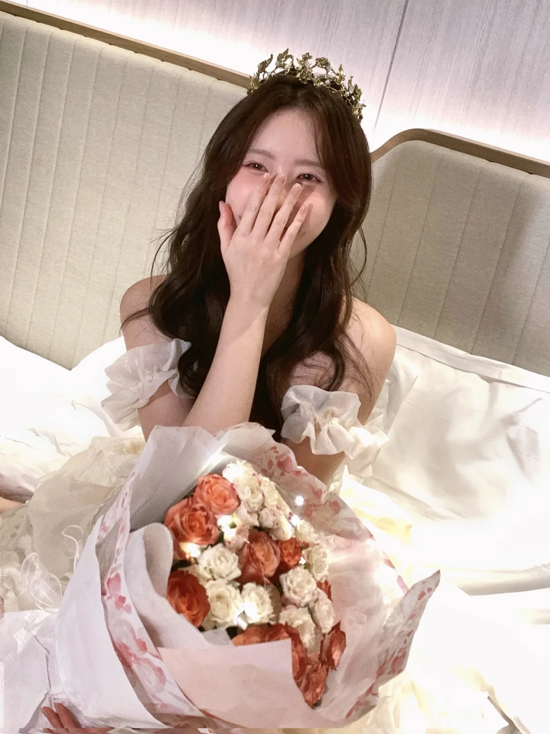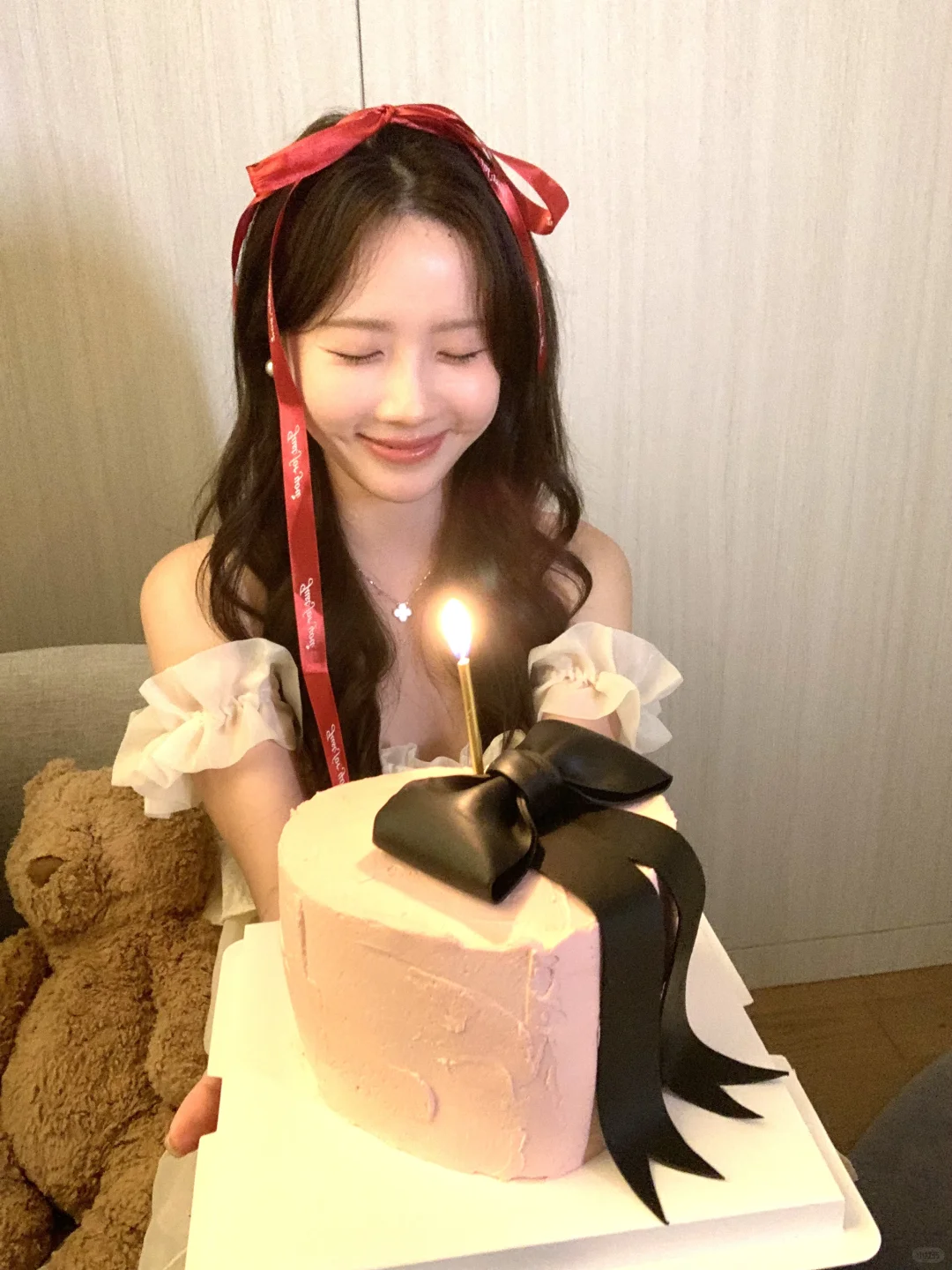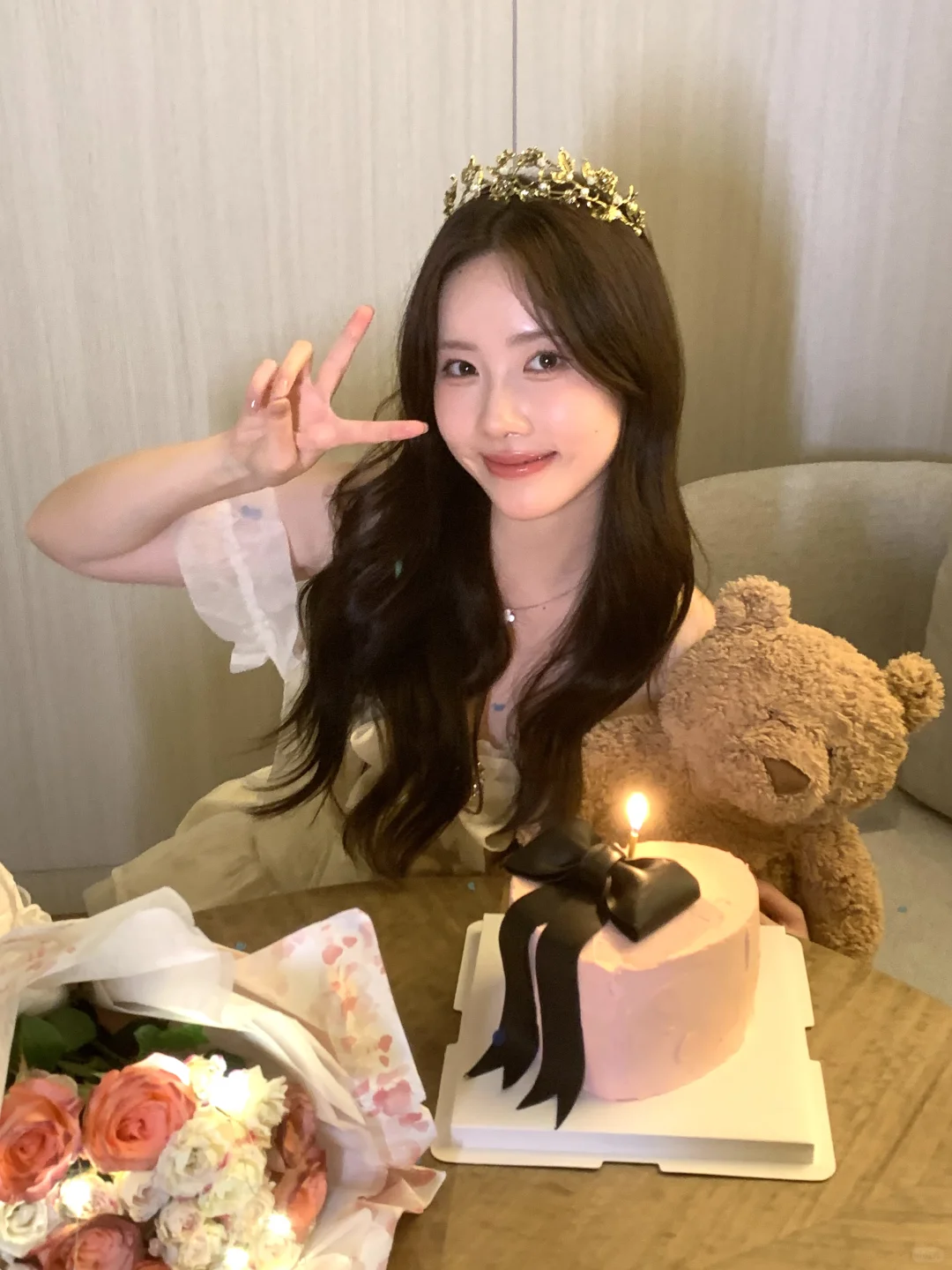 生日拍照姿势🈶️! 可以准备一束花 在被单上和花花互动 蛋糕上的丝带也是不错的道具哦! 照片上xs max拍的~
